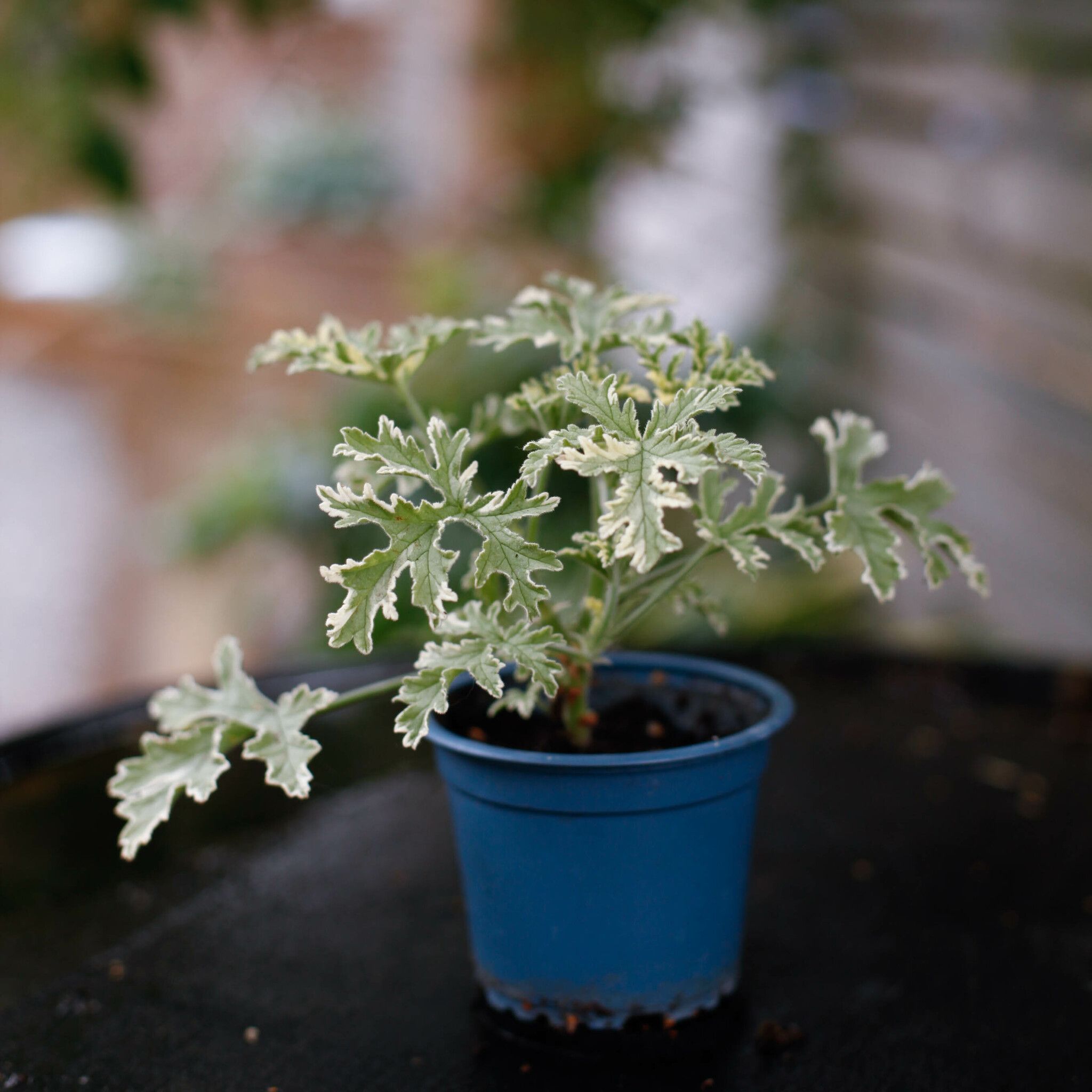 Pelargonium 'Lady Plymouth' 9 cm - DoftpelargonKrukstorlek 9 cm.SticklingGrönt frodigt bladverk med vit kant. Vid beröring sprids en stark doft av Pepparmint.
