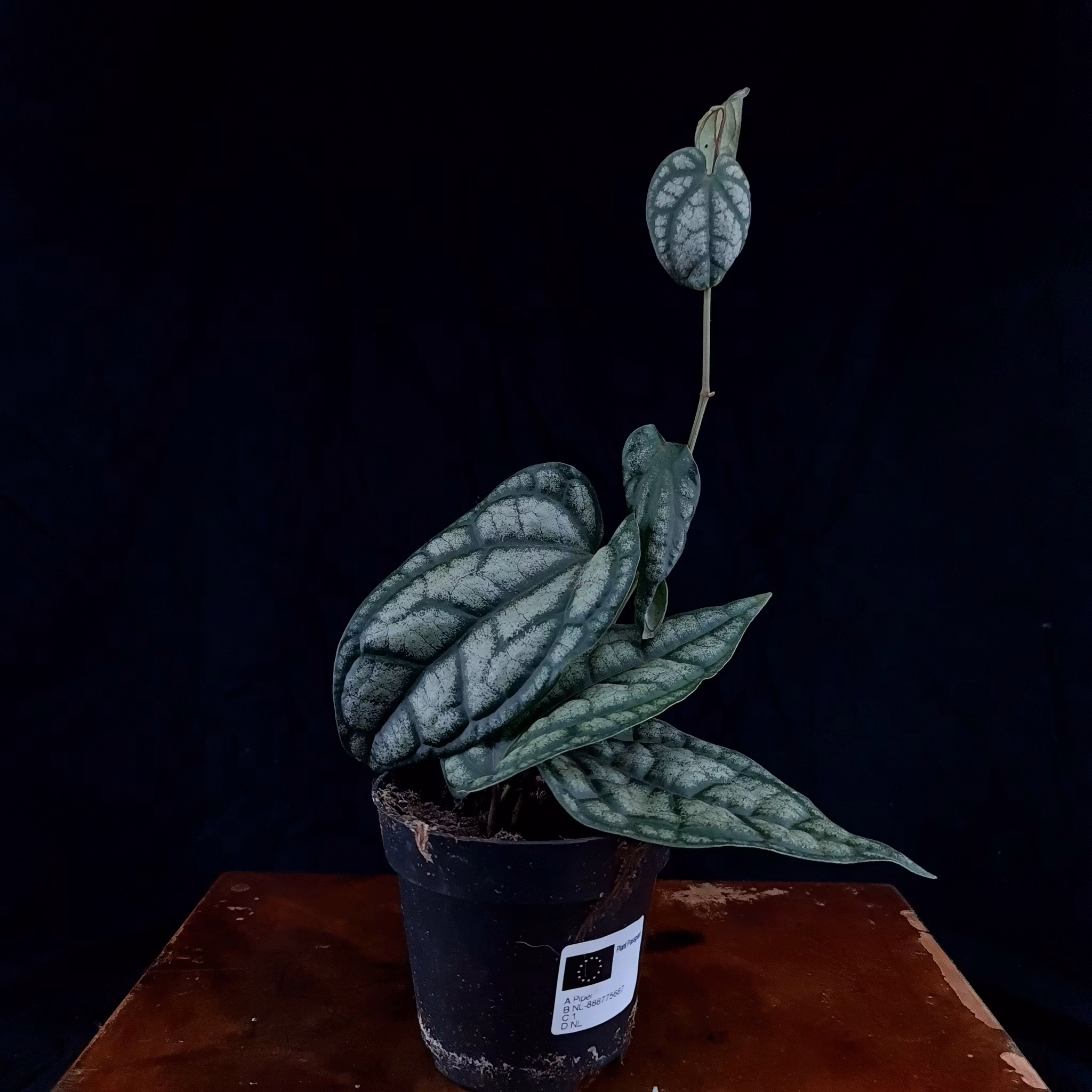 Piper sylvaticum Krukstorlek 12 cmPiper Sylvaticum är en sällsynt klättrande växt från Himalaya. Otroligt vackra blad med silvrig bladnerver. SkötselP