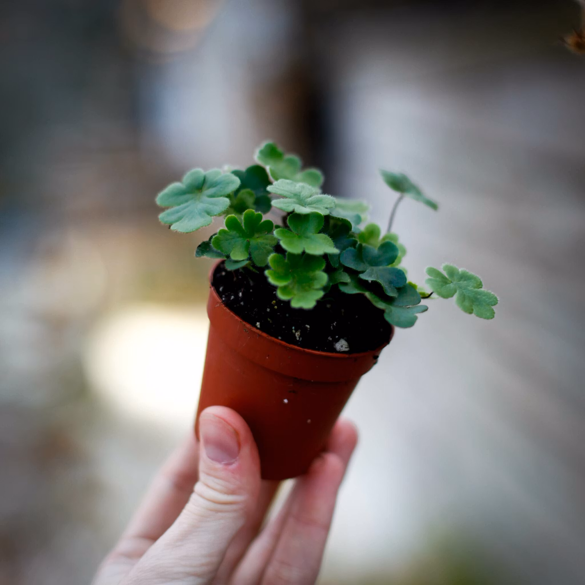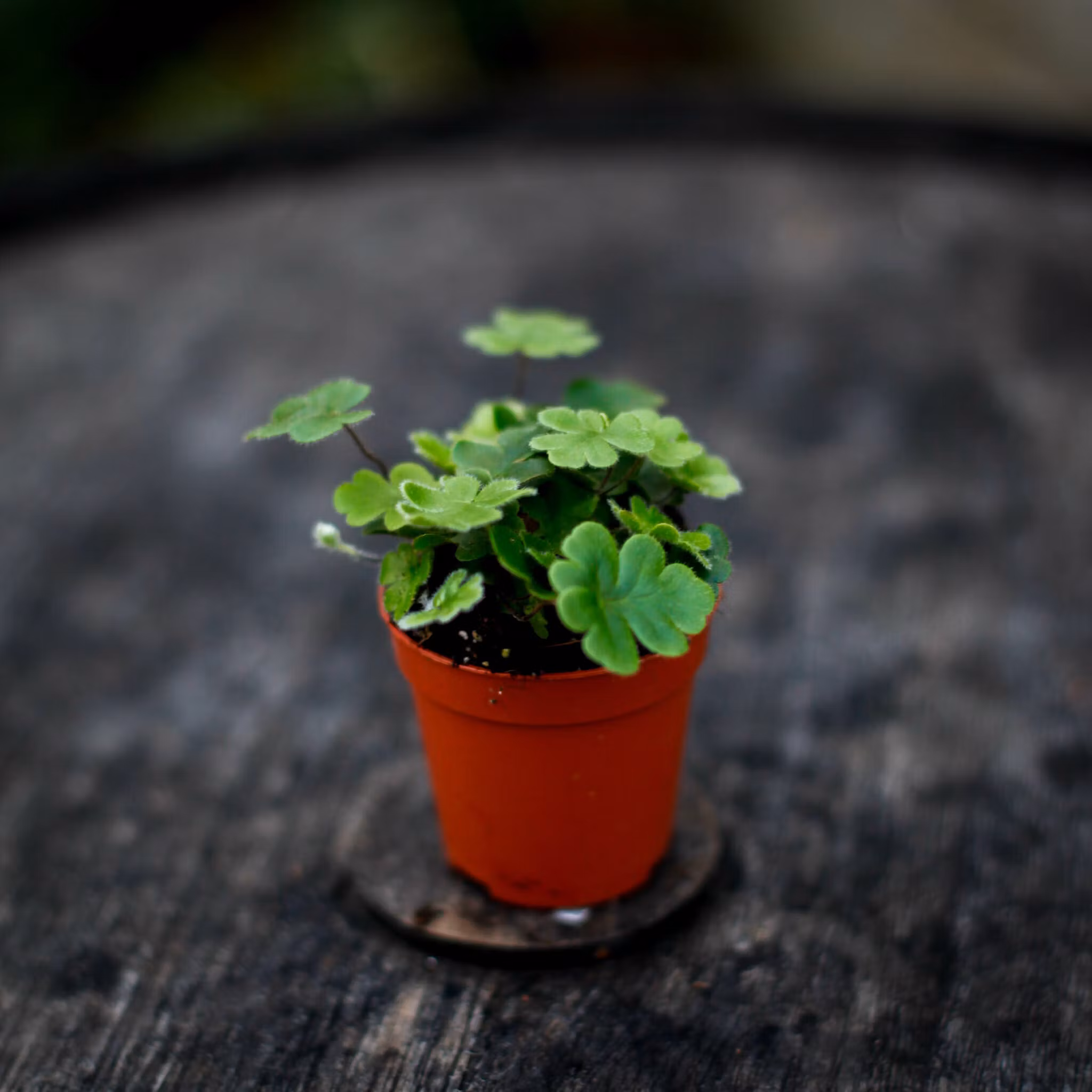 Upplev den exotiska skönheten hos Doryopteris cordata, en unik ormbunke med hjärtformade och "antler"-blad. Perfekt för skuggiga hörn! 🌿