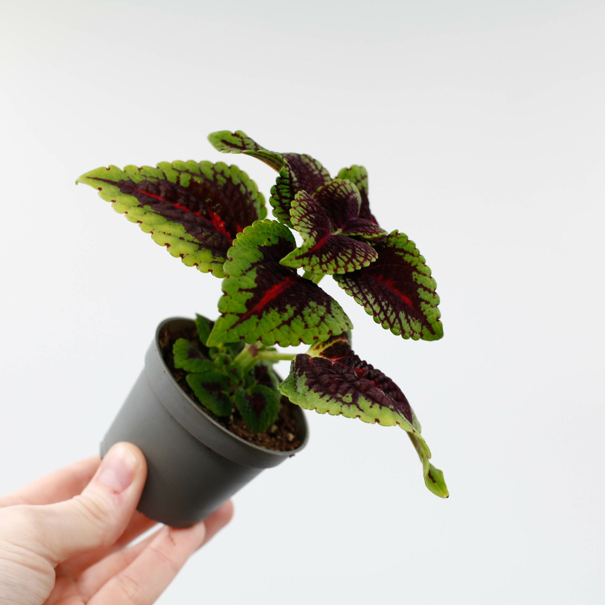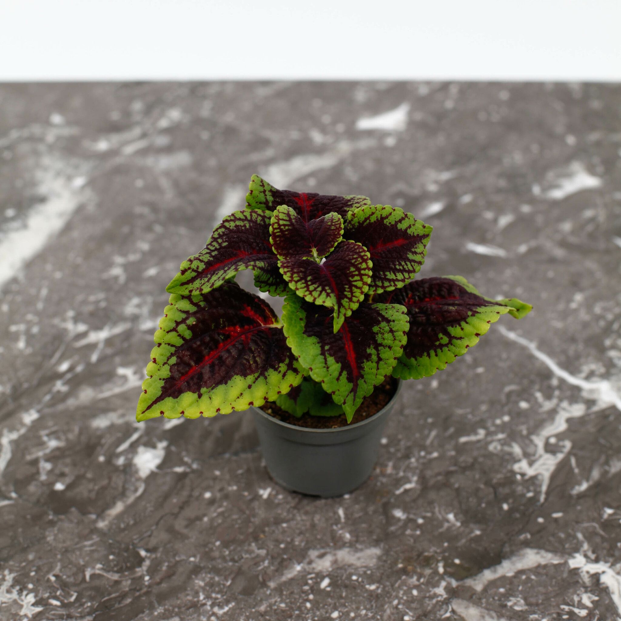 Palettblad 'Abbey Road' är en fascinerande växt med ett dramatiskt bladverk som kombinerar mörka, djupgröna toner med ljusa inslag av lime och rosa. Det unika mönstret på bladen ger växten ett konstnärligt och levande uttryck, vilket gör den till ett naturligt blickfång. Med sitt buskiga växtsätt är 'Abbey Road' ett utmärkt val för att skapa liv och färg i hemmet eller trädgården.