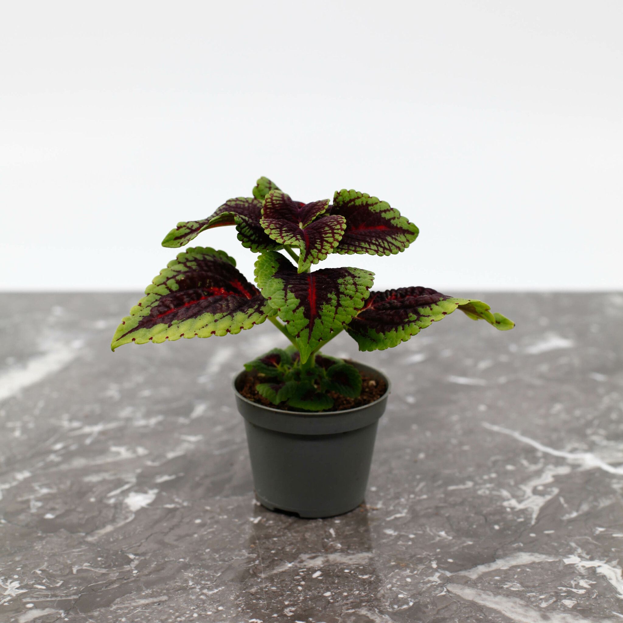 Upptäck 'Abbey Road' Palettblad 6 cm - en växt med mörklila blad och ljusgrön kant. Skapa kontrast i ditt hem!