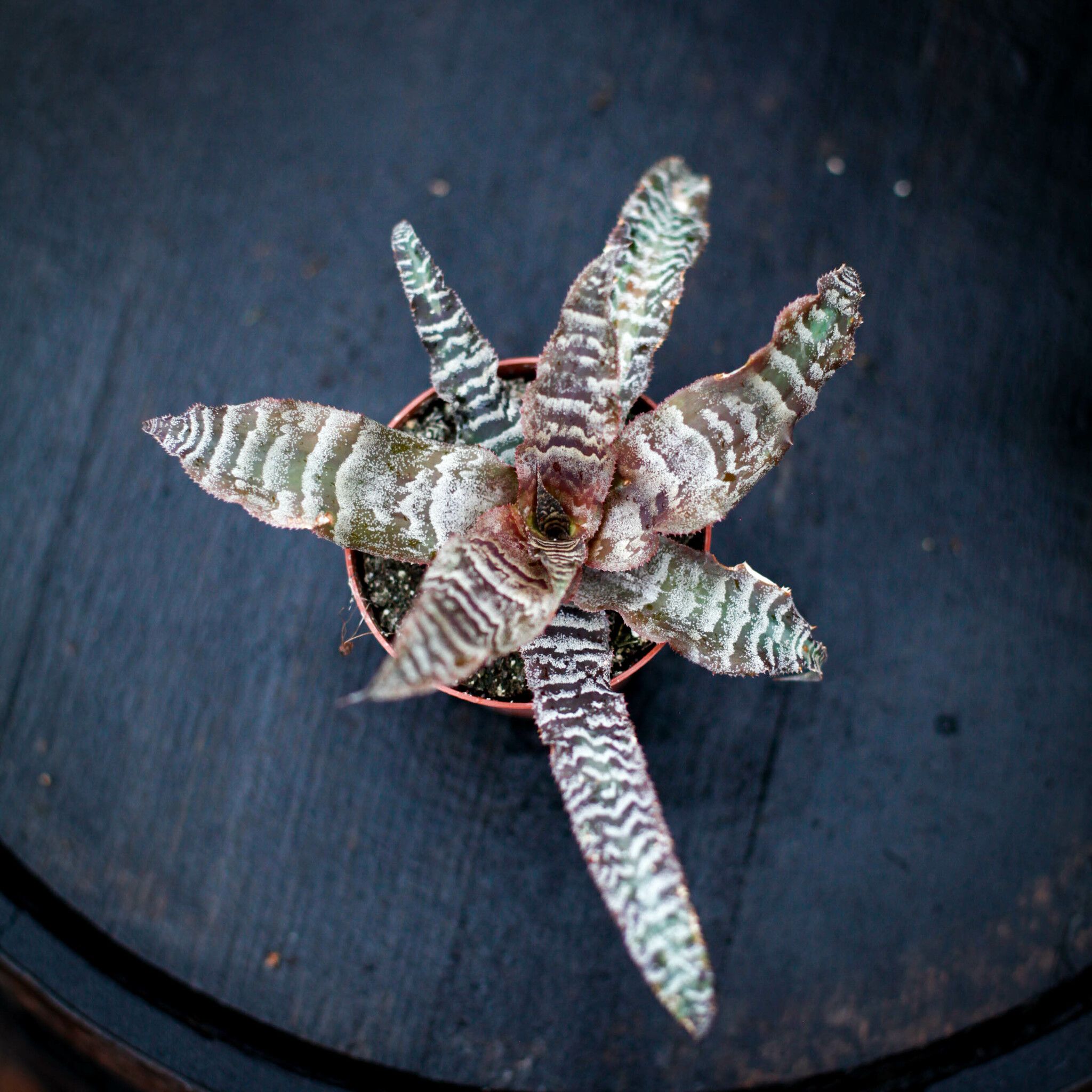 Upptäck Cryptanthus zonatus ,9cm hos Klorofyllverket.se – en unik bromelia med zebramönstrade blad. Idealisk för exotisk inredning och lättskött för alla! 🌿