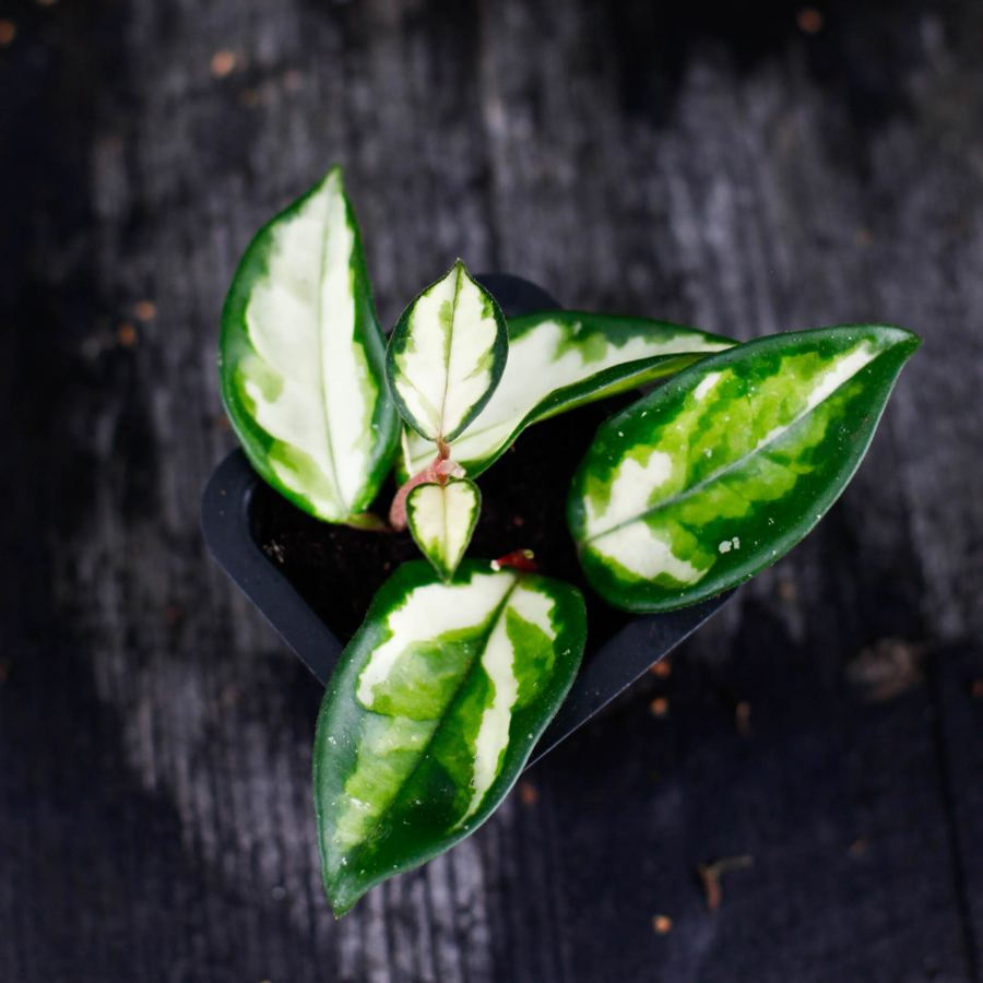 Hoya carnosa 'Tricolor' är en fantastisk växt inte bara för sina blommor utan även för sina dekorativa blad, som kan variera i nyans beroende på ljuset. Den rosa och vita färgen på bladen gör att denna växt ser nästan ut som en konstnärlig målning. Hoya-växter är också kända för sina tåliga och lättskötta egenskaper, vilket gör 'Tricolor' till en perfekt växt för alla som vill ha en både vacker och enkel växt att ta hand om.