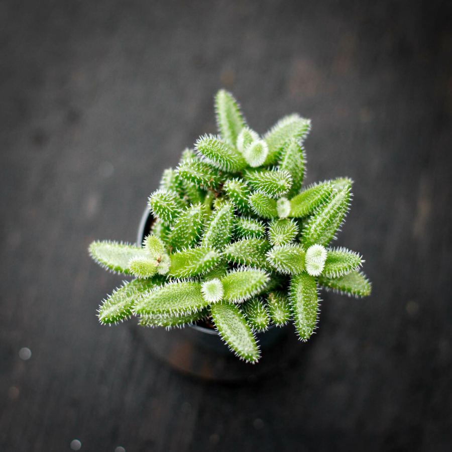 Upptäck Delosperma echinatum 6 cm, "Pickle Plant" – en unik och lättskött suckulent med charmiga, borstiga blad. Perfekt för ljusa fönsterbrädor!