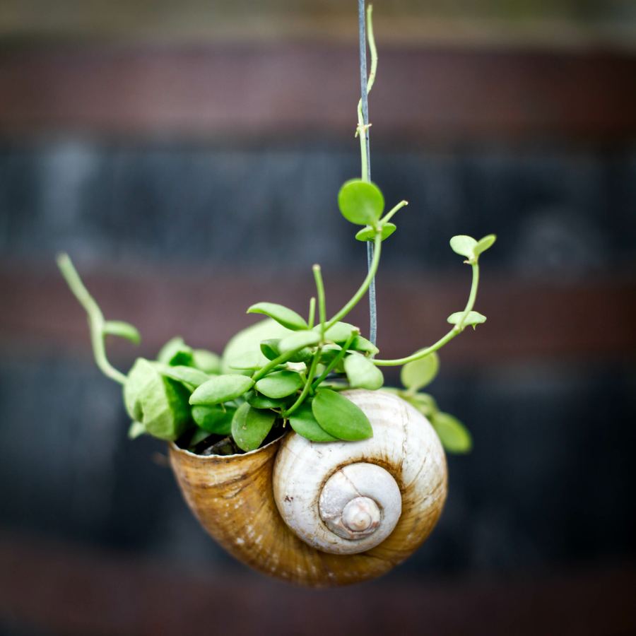 Denna kombination av Dischidia pectenoides i en snäcka är ett utmärkt val för dem som söker en annorlunda och iögonfallande växtdekoration som är både lättskött och exotisk.