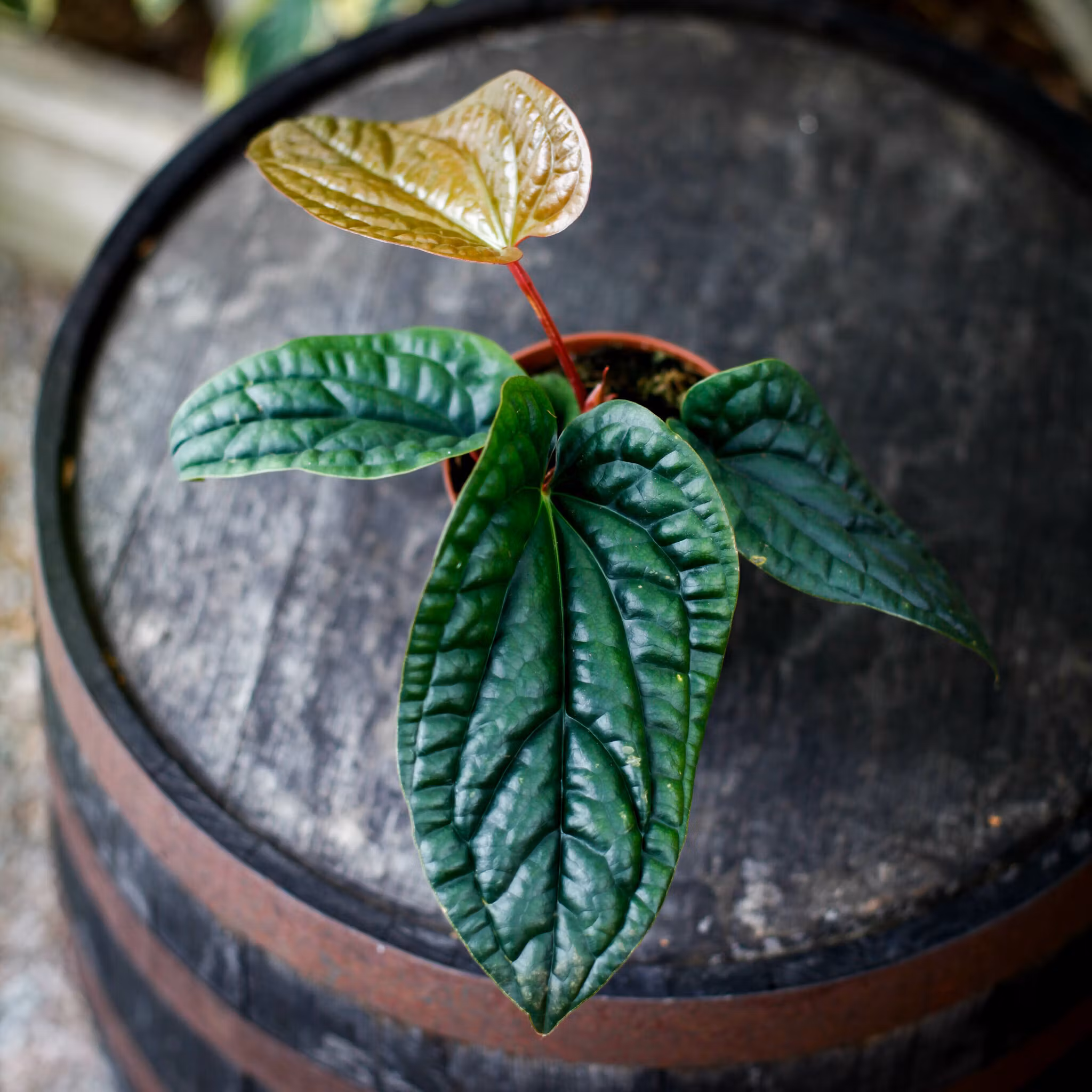 Anthurium luxurians x radicans är perfekt för växtälskare som letar efter en lättskött och exotisk växt som tillför en tropisk känsla till hemmet. Med sitt dramatiska utseende blir den snabbt en av favoriterna i varje växtsamling.