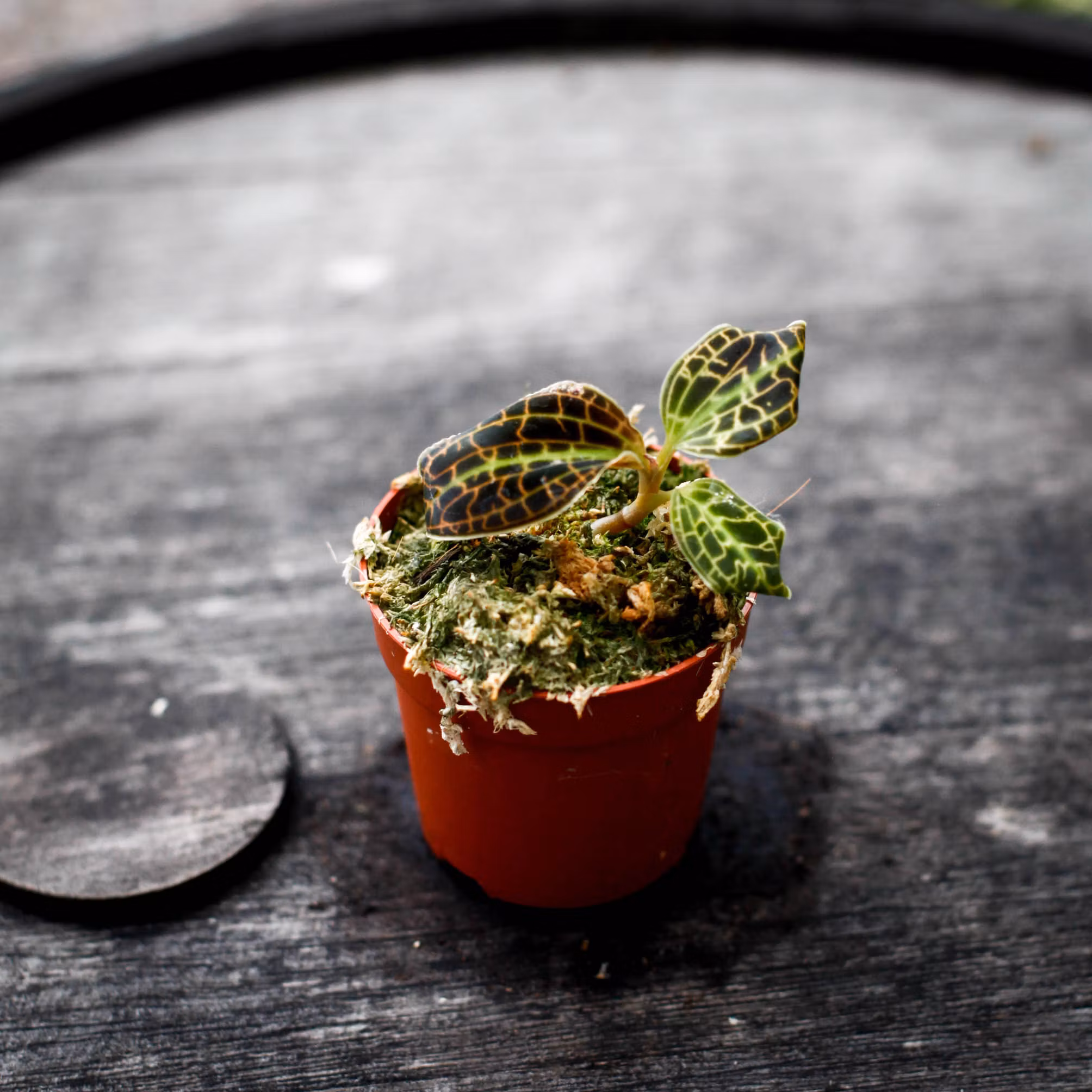 Letar du efter något extra? Juvelorkidéer är riktiga smycken i växtsamlingen – kända för sina otroligt vackra blad som glittrar i ljuset som ädelstenar. Till skillnad från många andra orkidéer är det inte blommorna som står i fokus här, utan de praktfulla bladen med sina skimrande nerver och sammetstextur.