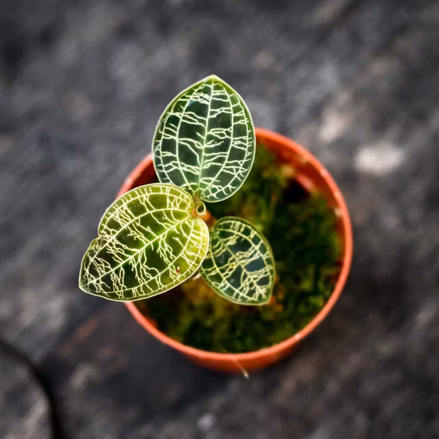 Letar du efter något extra? Juvelorkidéer är riktiga smycken i växtsamlingen – kända för sina otroligt vackra blad som glittrar i ljuset som ädelstenar. Till skillnad från många andra orkidéer är det inte blommorna som står i fokus här, utan de praktfulla bladen med sina skimrande nerver och sammetstextur.