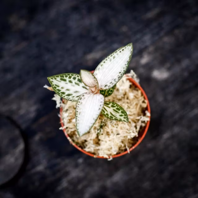 Letar du efter något extra? Juvelorkidéer är riktiga smycken i växtsamlingen – kända för sina otroligt vackra blad som glittrar i ljuset som ädelstenar. Till skillnad från många andra orkidéer är det inte blommorna som står i fokus här, utan de praktfulla bladen med sina skimrande nerver och sammetstextur.