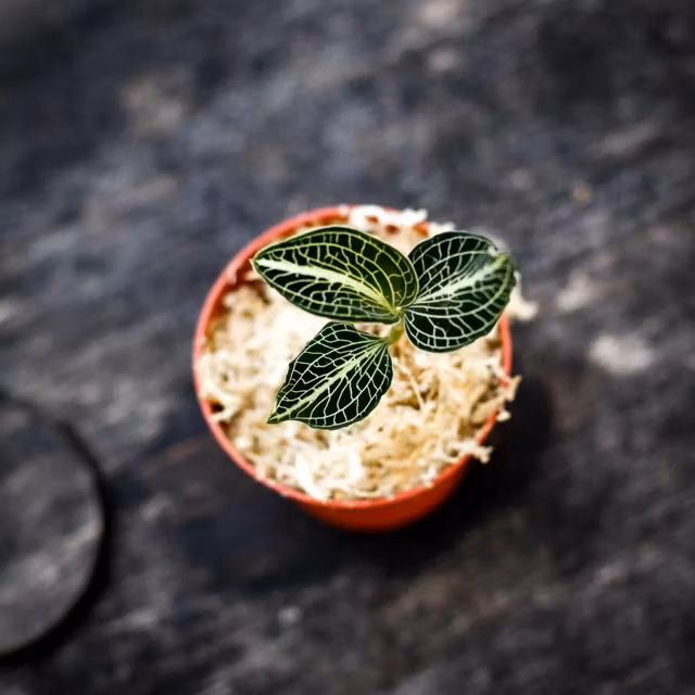Letar du efter något extra? Juvelorkidéer är riktiga smycken i växtsamlingen – kända för sina otroligt vackra blad som glittrar i ljuset som ädelstenar. Till skillnad från många andra orkidéer är det inte blommorna som står i fokus här, utan de praktfulla bladen med sina skimrande nerver och sammetstextur.