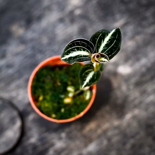 Letar du efter något extra? Juvelorkidéer är riktiga smycken i växtsamlingen – kända för sina otroligt vackra blad som glittrar i ljuset som ädelstenar. Till skillnad från många andra orkidéer är det inte blommorna som står i fokus här, utan de praktfulla bladen med sina skimrande nerver och sammetstextur.