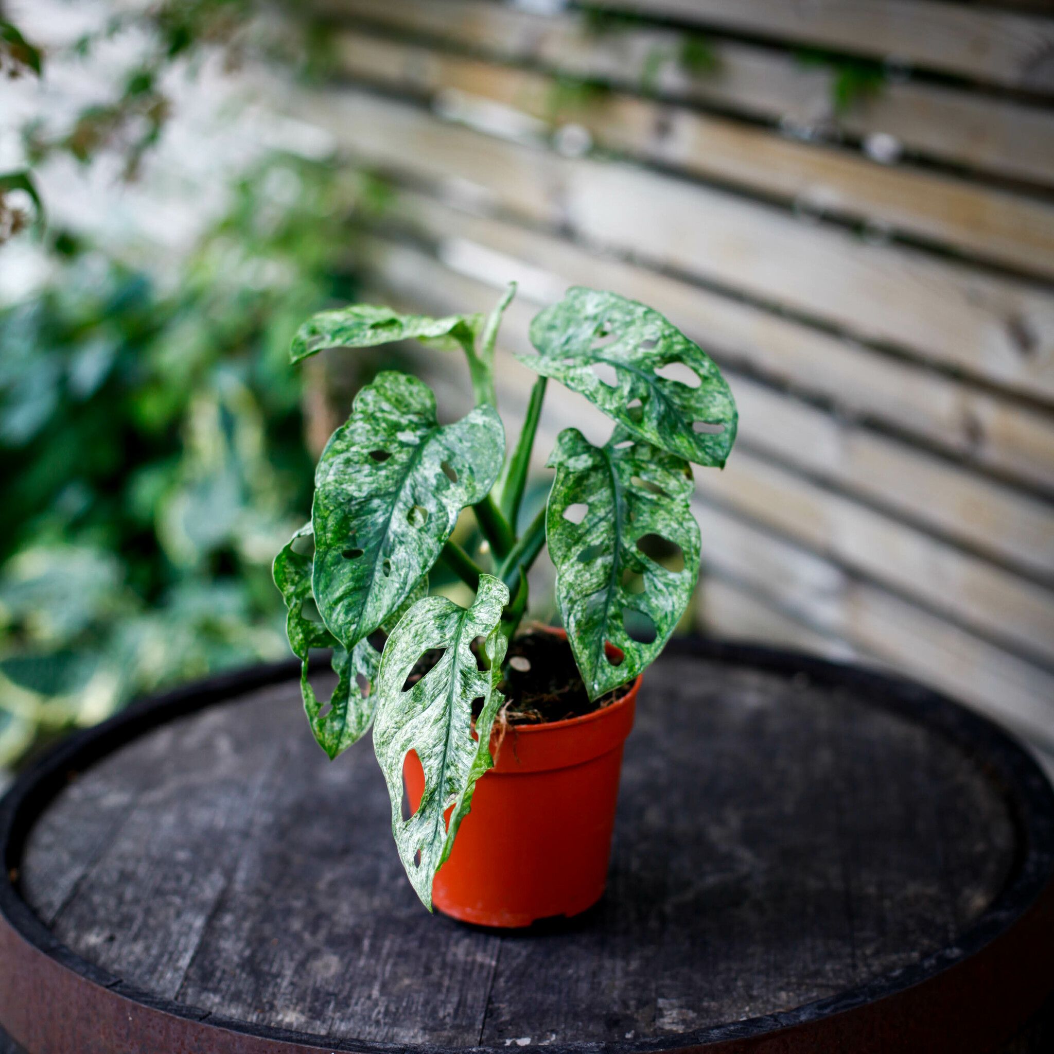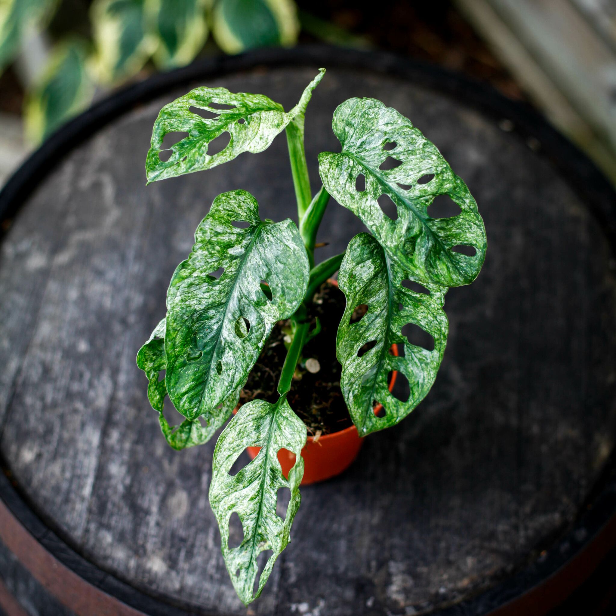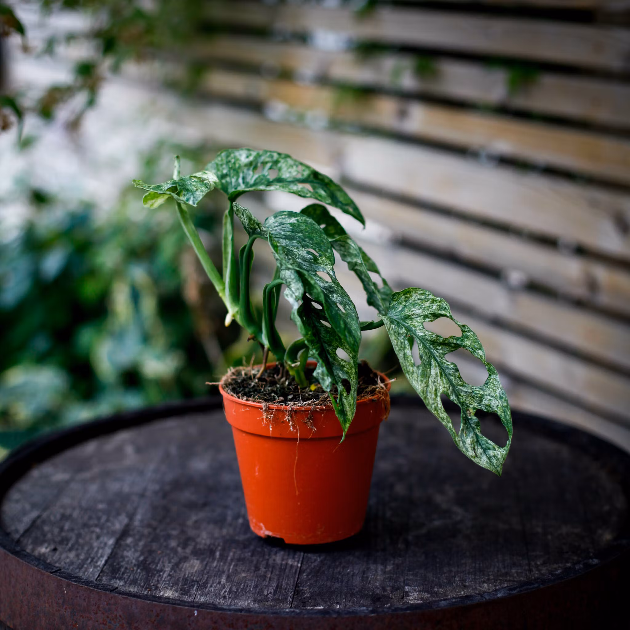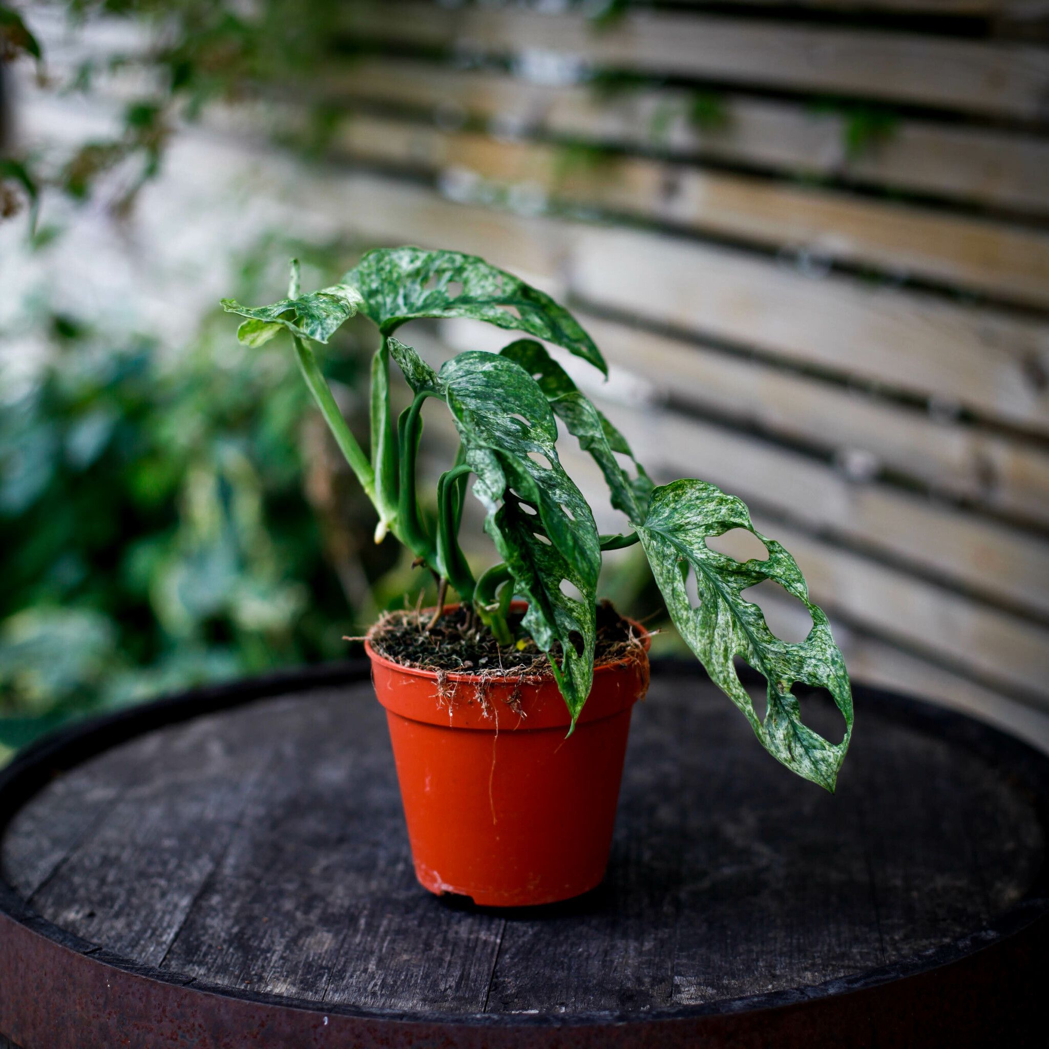 UNIK! Köp växten du ser! Monstera adansonii 'Mint' 12 cm, en sällsynt grönskande skönhet. Perfekt för amplar och klättring. Beställ nu hos Klorofyllverket.se!