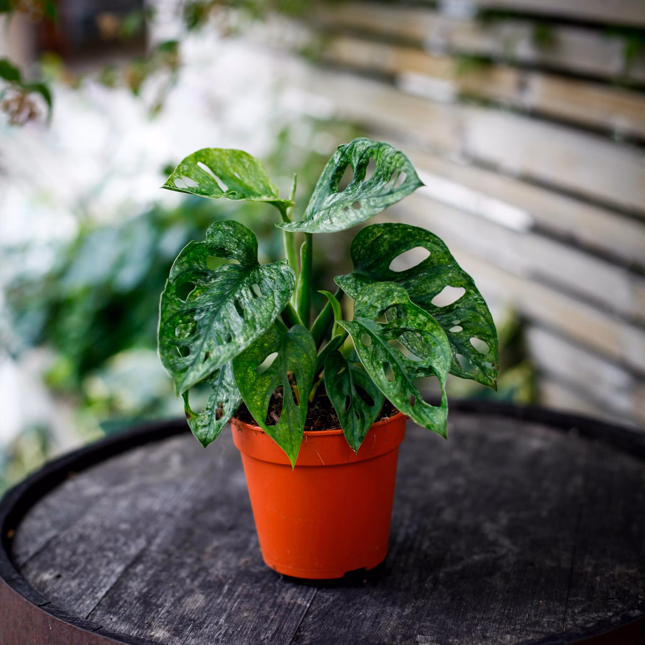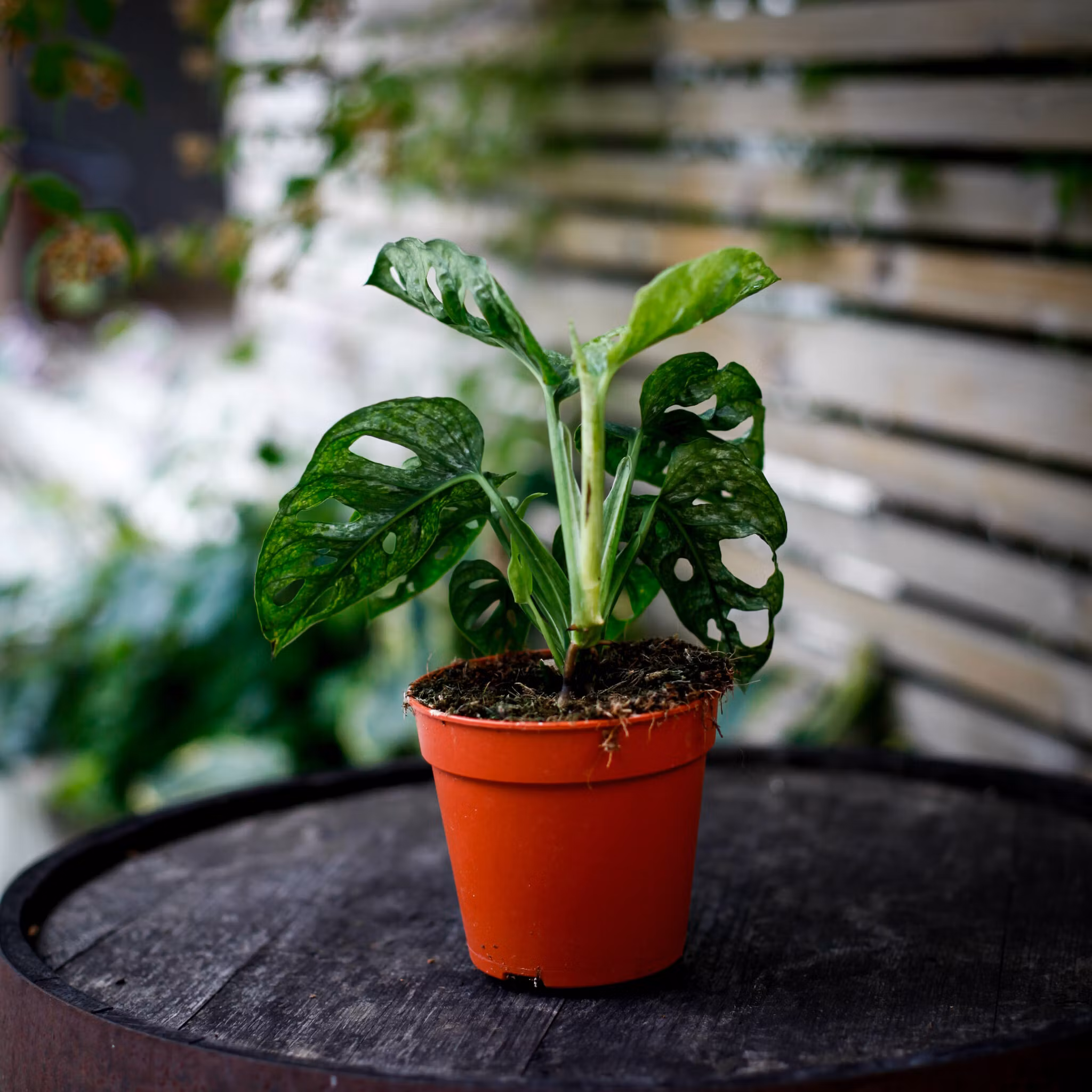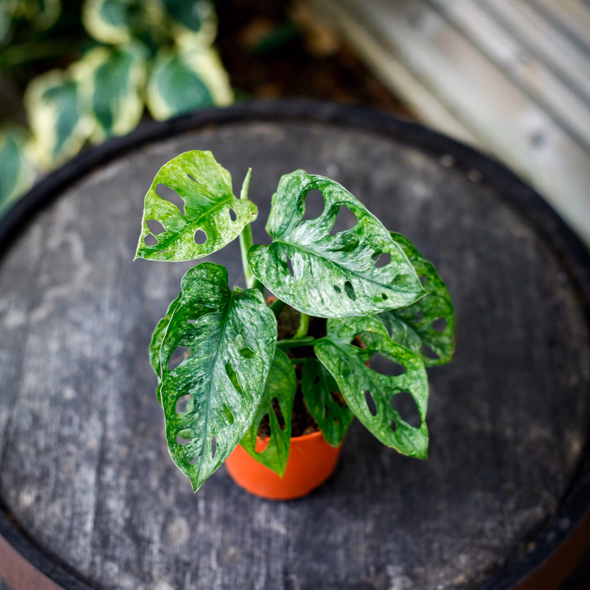 UNIK! Köp växten du ser! Monstera adansonii 'Mint'6 Krukstorlek 12 cm,, en sällsynt grönskande skönhet. Perfekt för amplar och klättring. Köp nu hos Klorofyllve