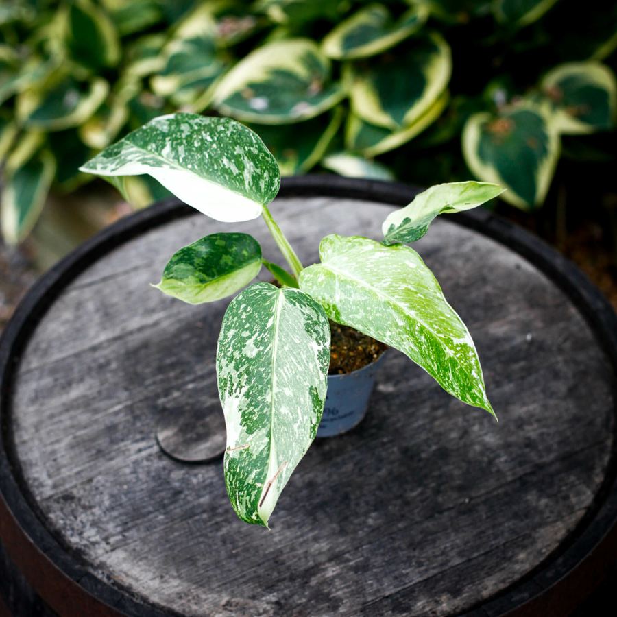 Philodendron 'Jose Buono' är en spektakulär och sällsynt växt som tillhör Philodendron-släktet och är känd för sina vackra, mönstrade blad. Med sin unika kombination av gröna, vita och ibland gulaktiga färger på bladen, är denna växt en perfekt inredningsdetalj för den som vill ha något iögonfallande och stilfullt .