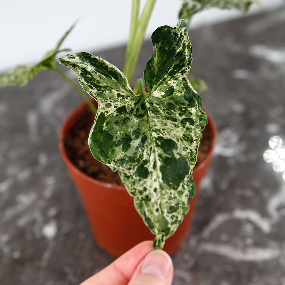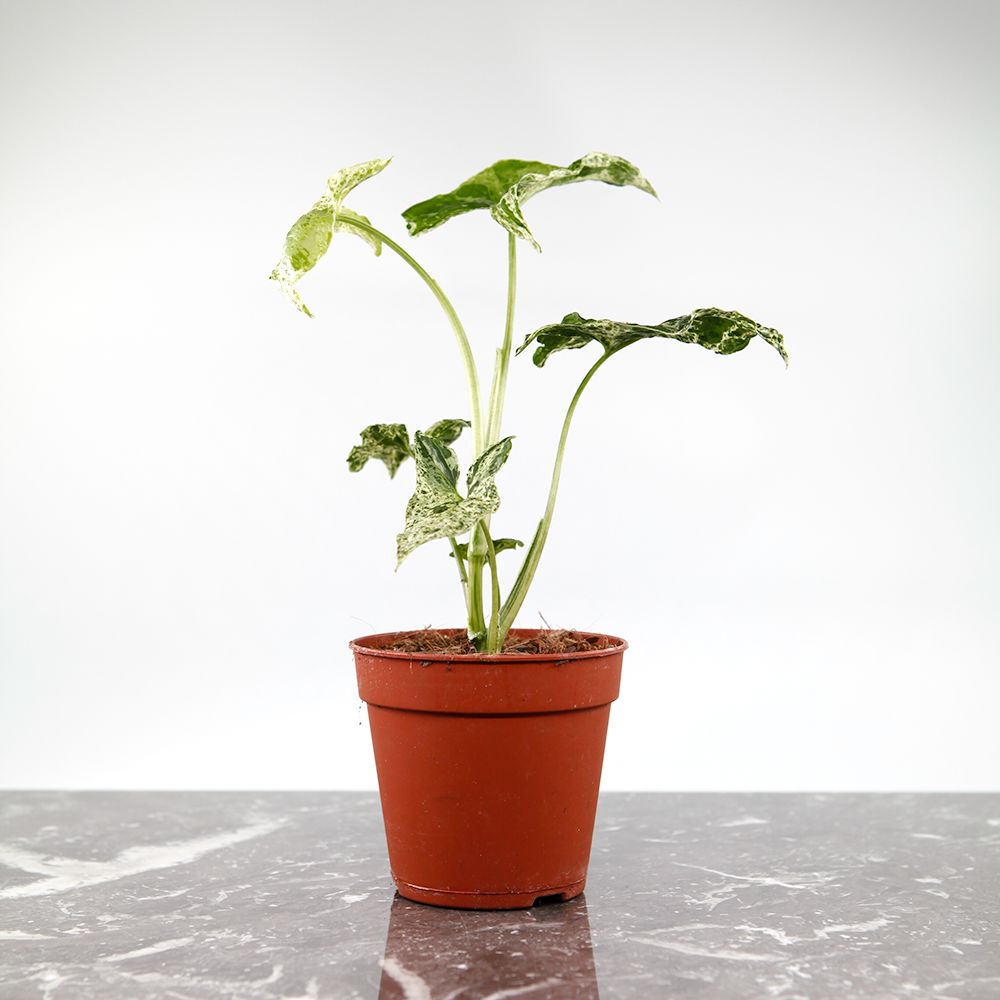 UNIK! Syngonium pollypodium 'Mottled Mojito’ 12 cm, nr.2 med variegerade blad. Lättskött, snabbväxande och lättodlad! Vattna rikligt, duscha ofta & ge växtnärin