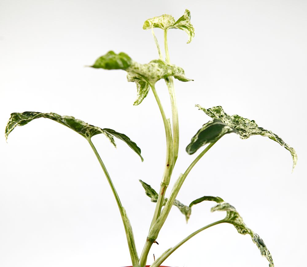 Ett samlarobjekt med vackert spräckliga variegerade blad. Lättskött och snabbväxande! Vill gärna klättra längs en mosstock eller en spalje. Stor och frodig planta!