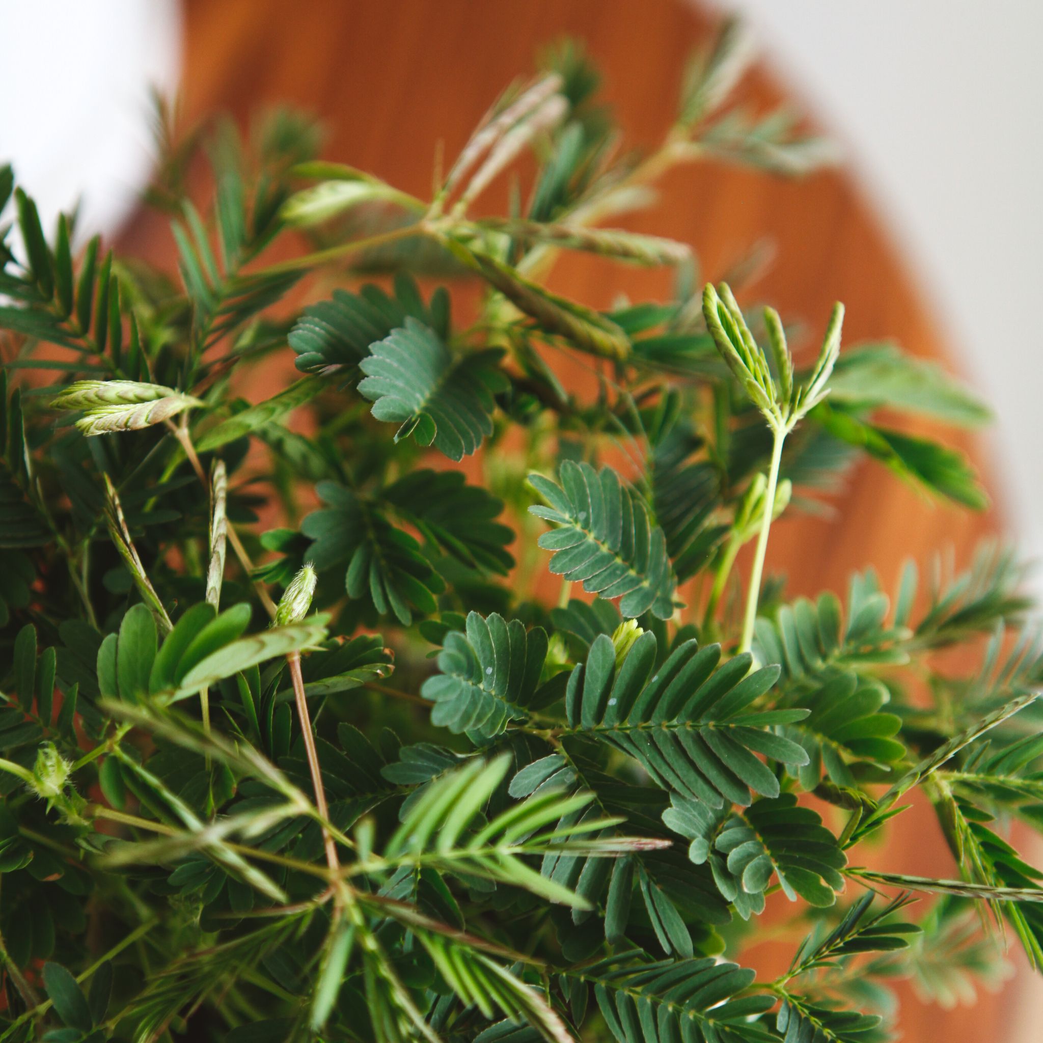 Mimosa pudica - Rör mig ejKrukstorlek 10 cm En fascinerande växt som kallas för Sensitiva och Rör mig ej. Bladen hos mimosa pudica är känsliga och fälls ih