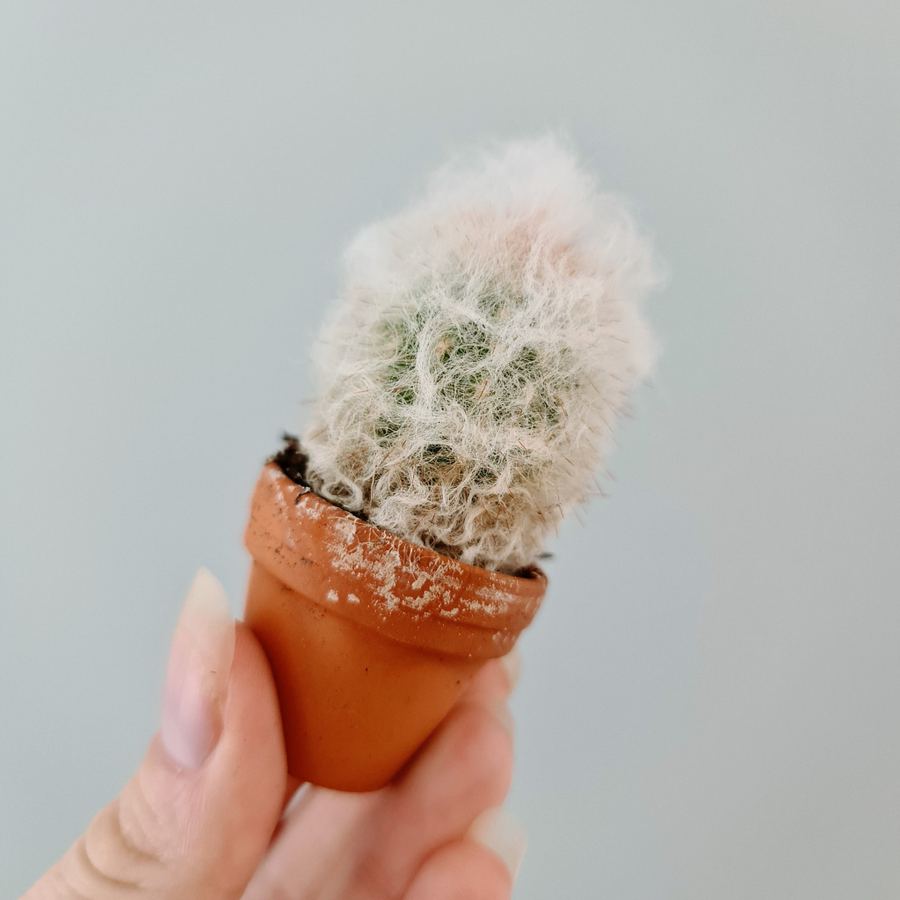 Minikaktus i lerkruka 🌵 Placera soligt, torka upp mellan vattningarna och ge svag näring vår-höst. Perfekt för den lata växtälskaren! 😎