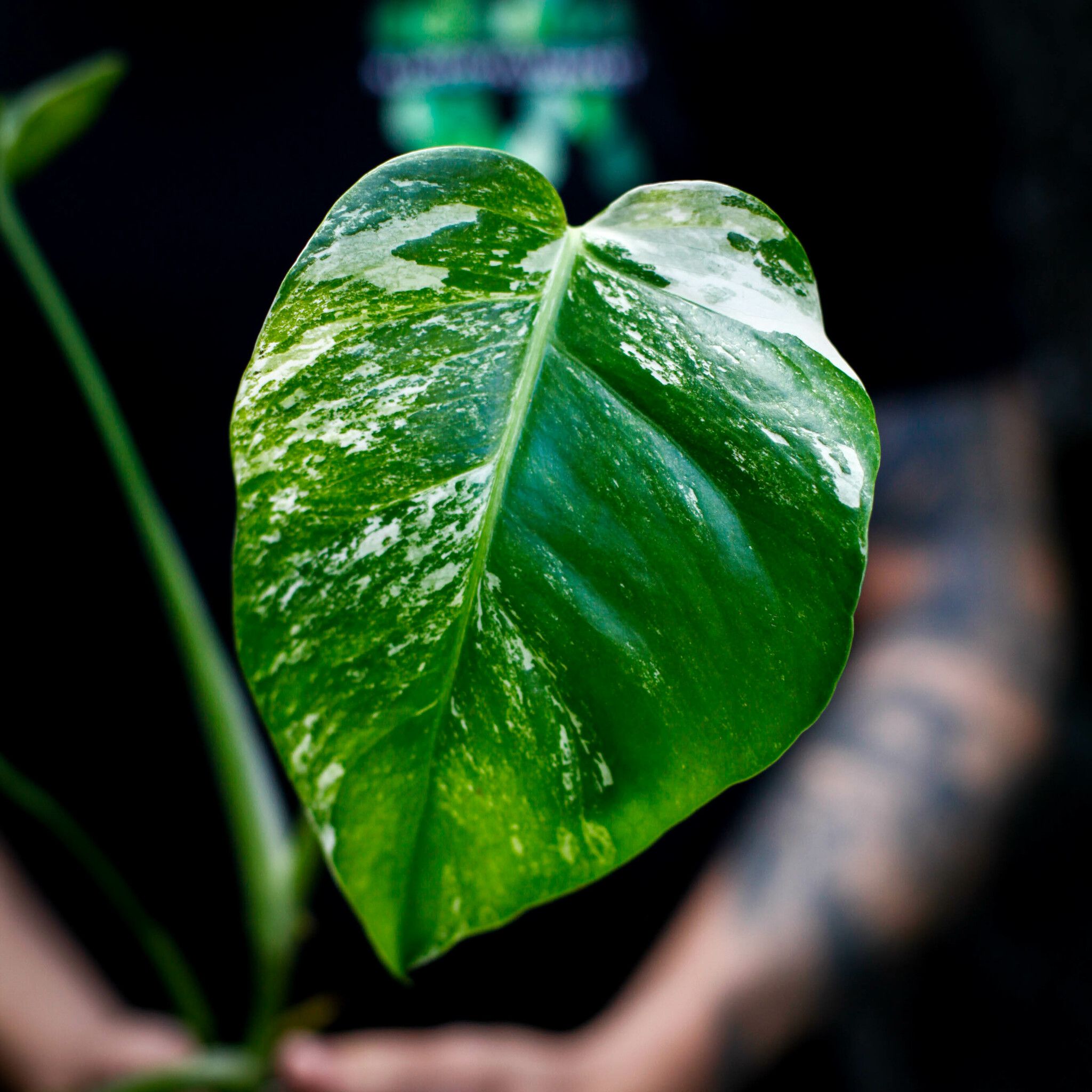 Monstera borsigiana ’Variegata’ är en klättrande tropisk växt ur Araceaefamiljen, uppskattad för sina dekorativa blad med vit- och grönmarmorerade partier.. Denna variation med variegering är eftertraktad eftersom varje blad får ett unikt mönster. I naturen växer den som en epifyt i Central- och Sydamerika och klättrar uppför träd för att nå ljuset. Plantorna är i stort behov av omplantering.