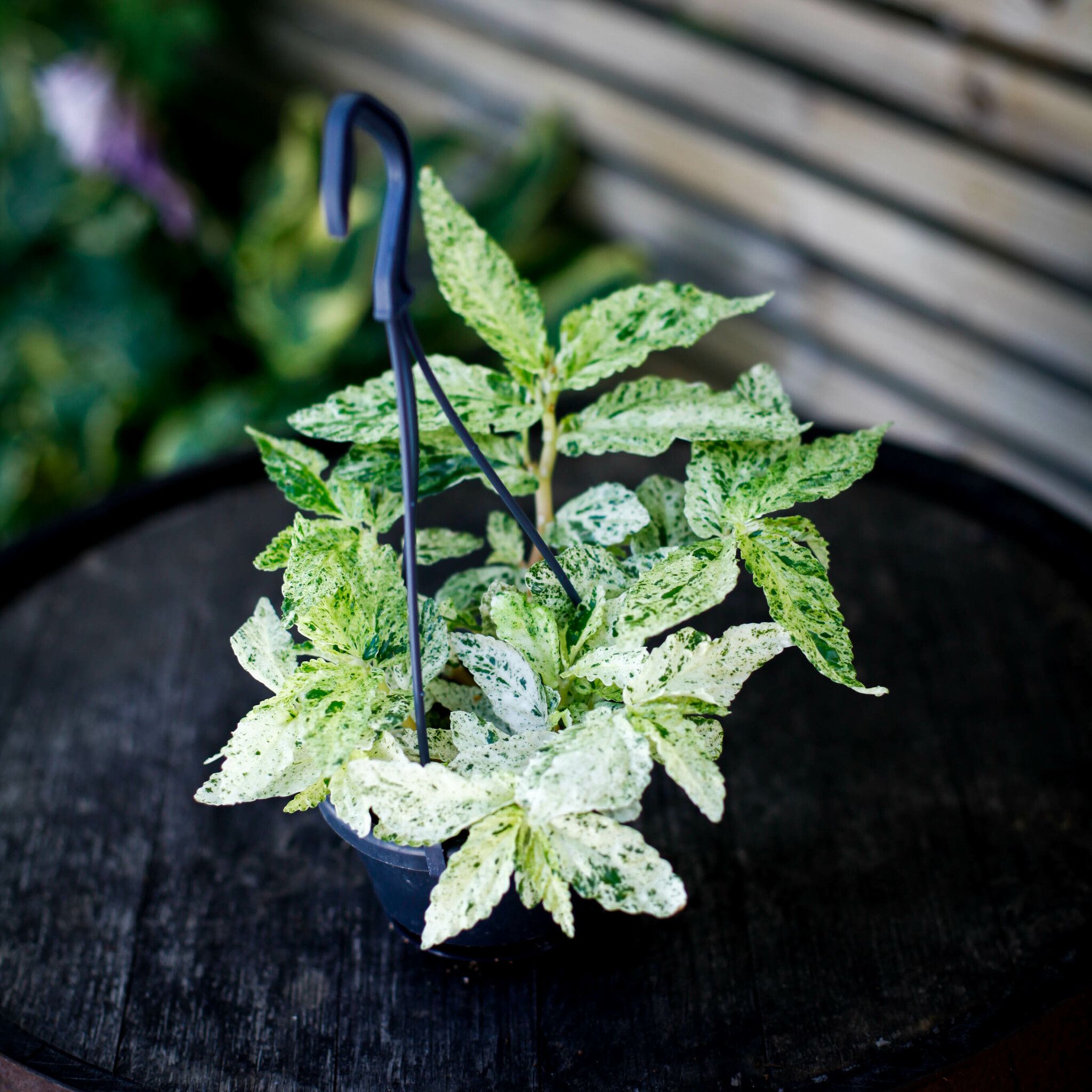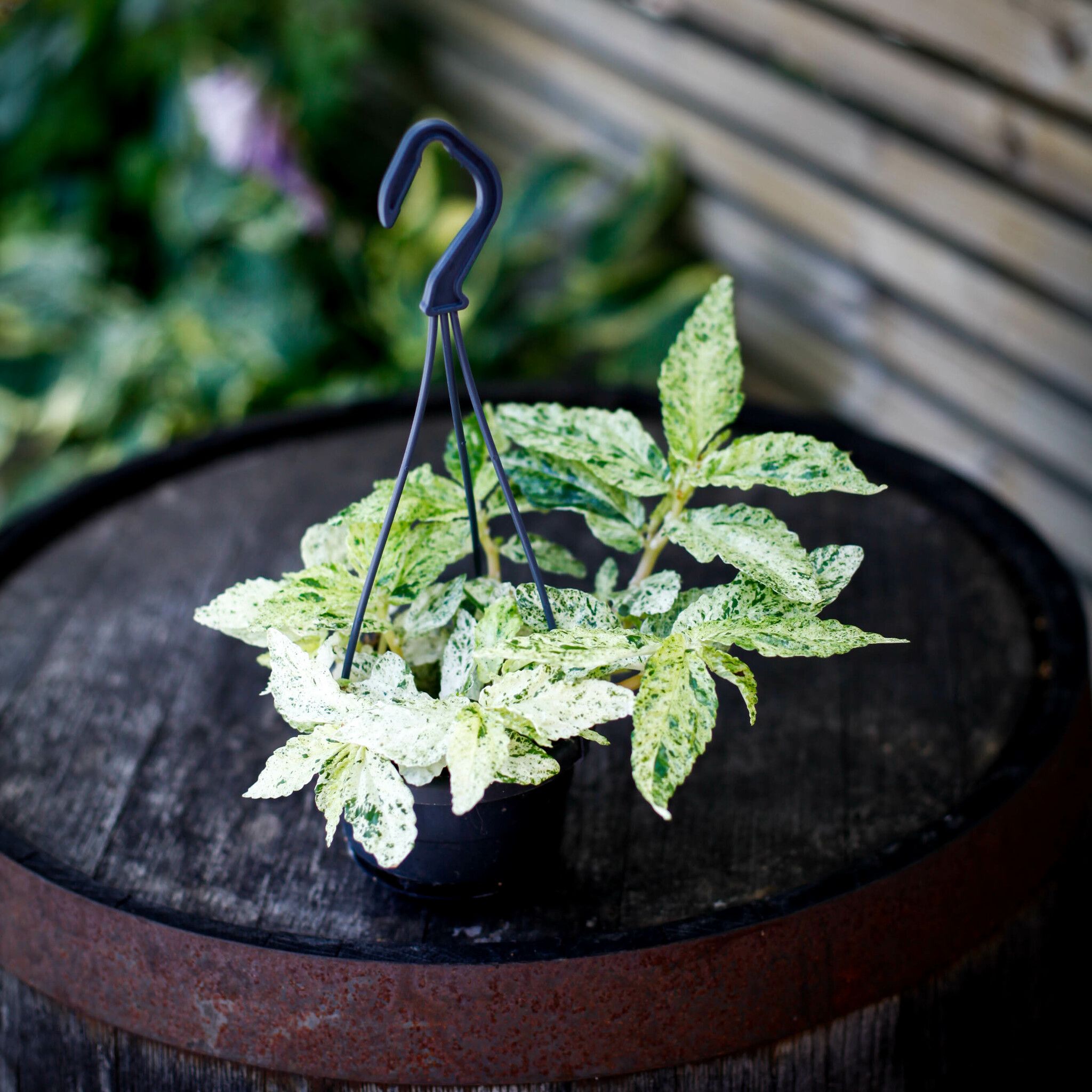 Pellionia repens 'Variegata' är en vacker ampelväxt med dekorativa, variegerade blad i grönt och silver. Denna lättskötta växt trivs i ljusa, indirekta ljusförhållanden och hänger elegant med sina långa, slingrande stjälkar. Perfekt för att skapa en grön och frodig atmosfär i ditt hem.