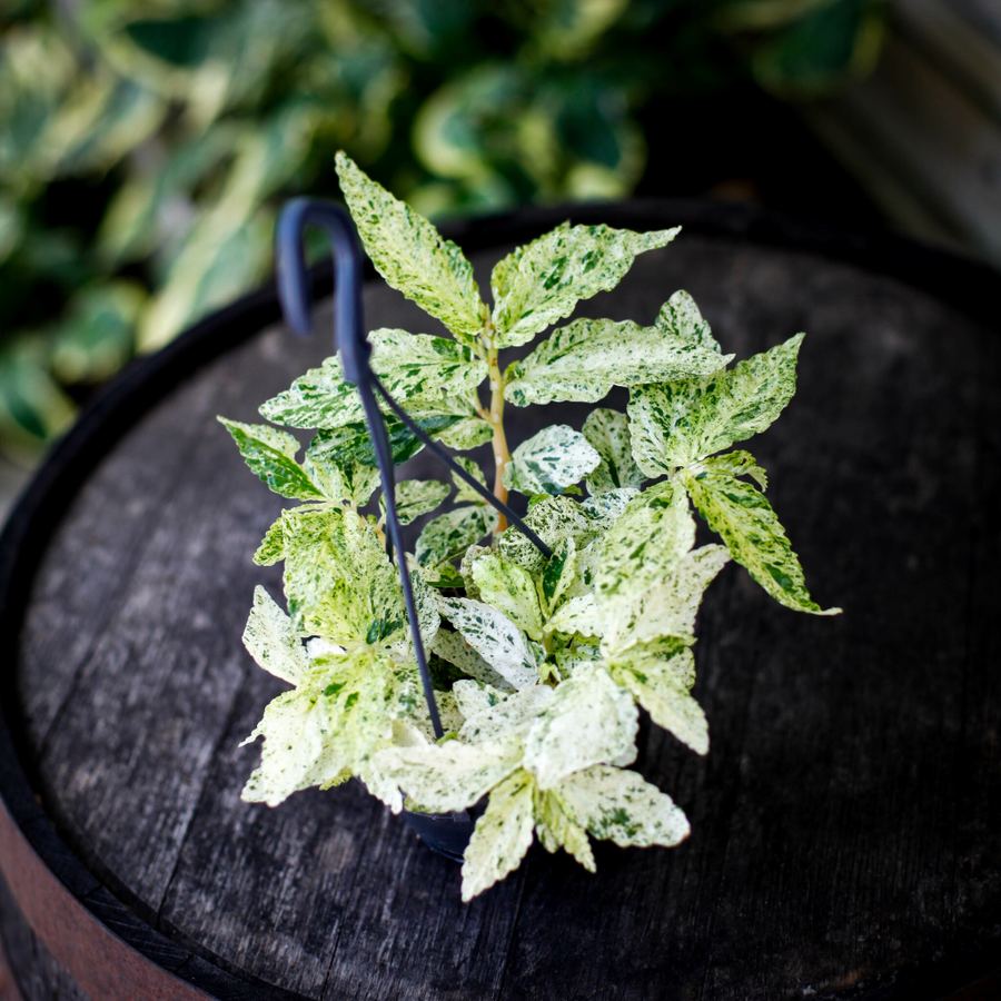 Pellionia repens 'Variegata': Skapa en grön oas med denna stiliga ampelväxt! Ge den ljus, indirekt belysning och håll jorden fuktig.