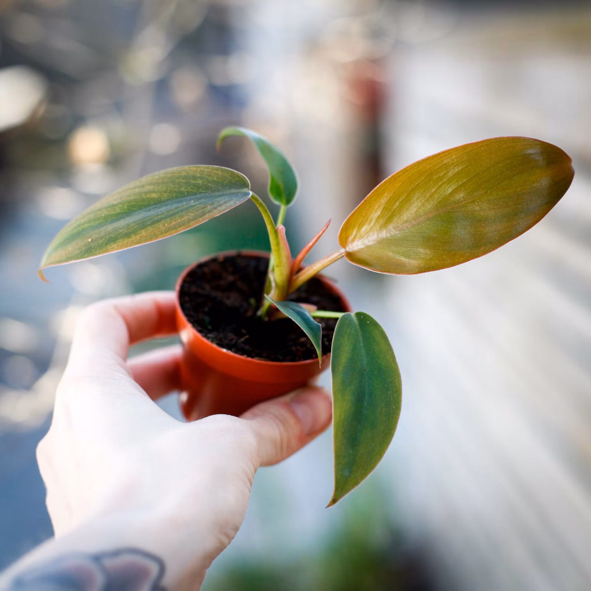 Philodendron 'Florida Bronze' 6 cm – en exotisk skönhet med bronsglänsande blad, perfekt för din gröna oas. Inspirera ditt hem med denna unika växt! 🌿