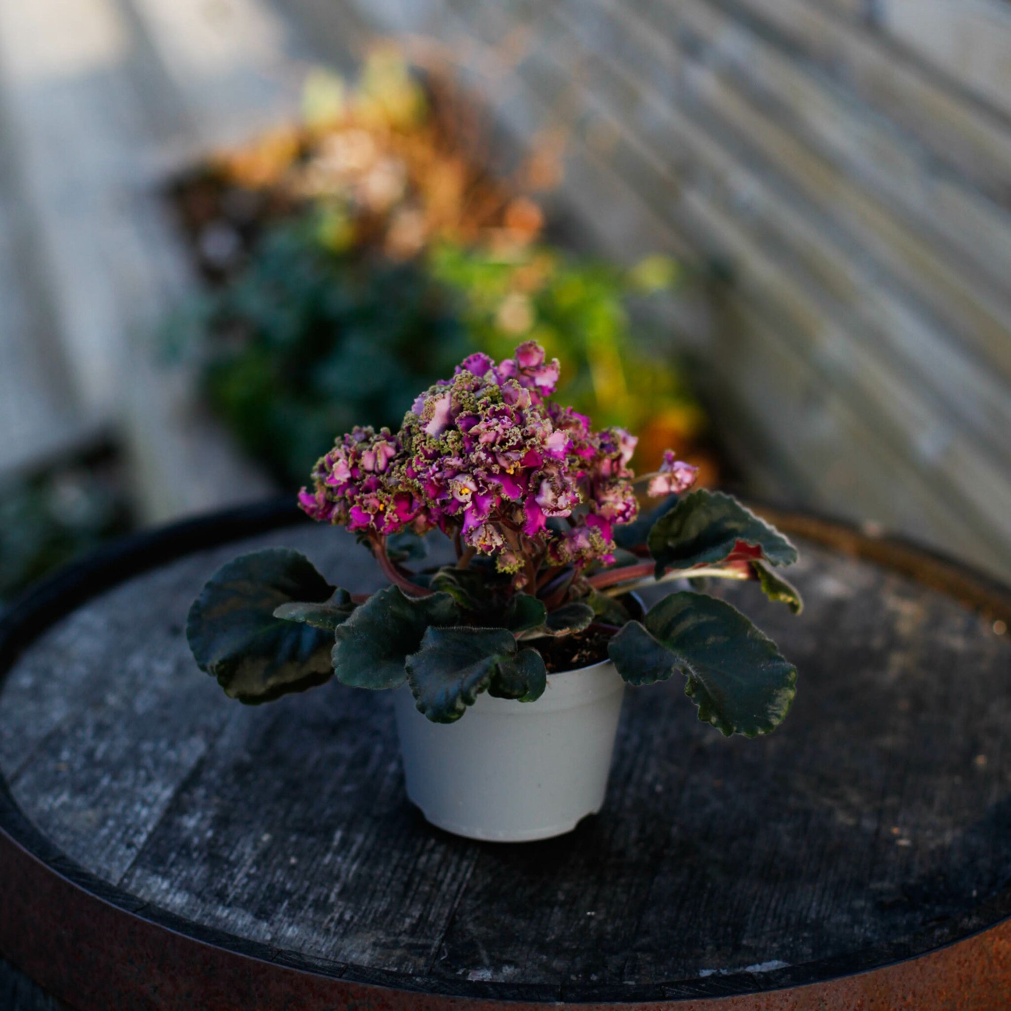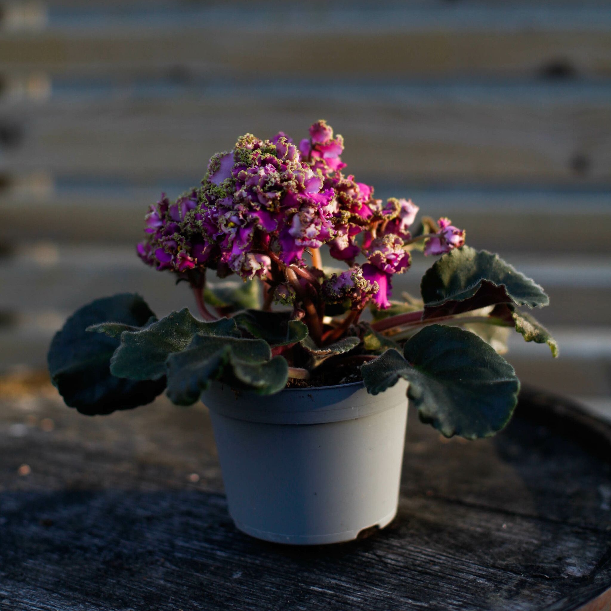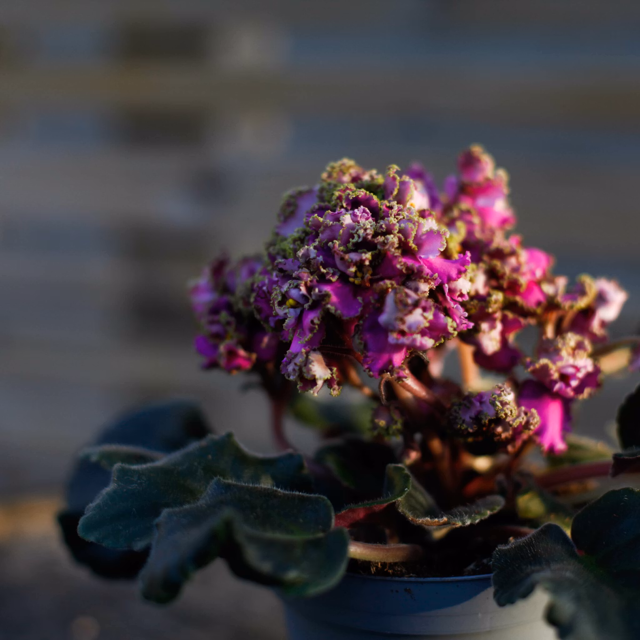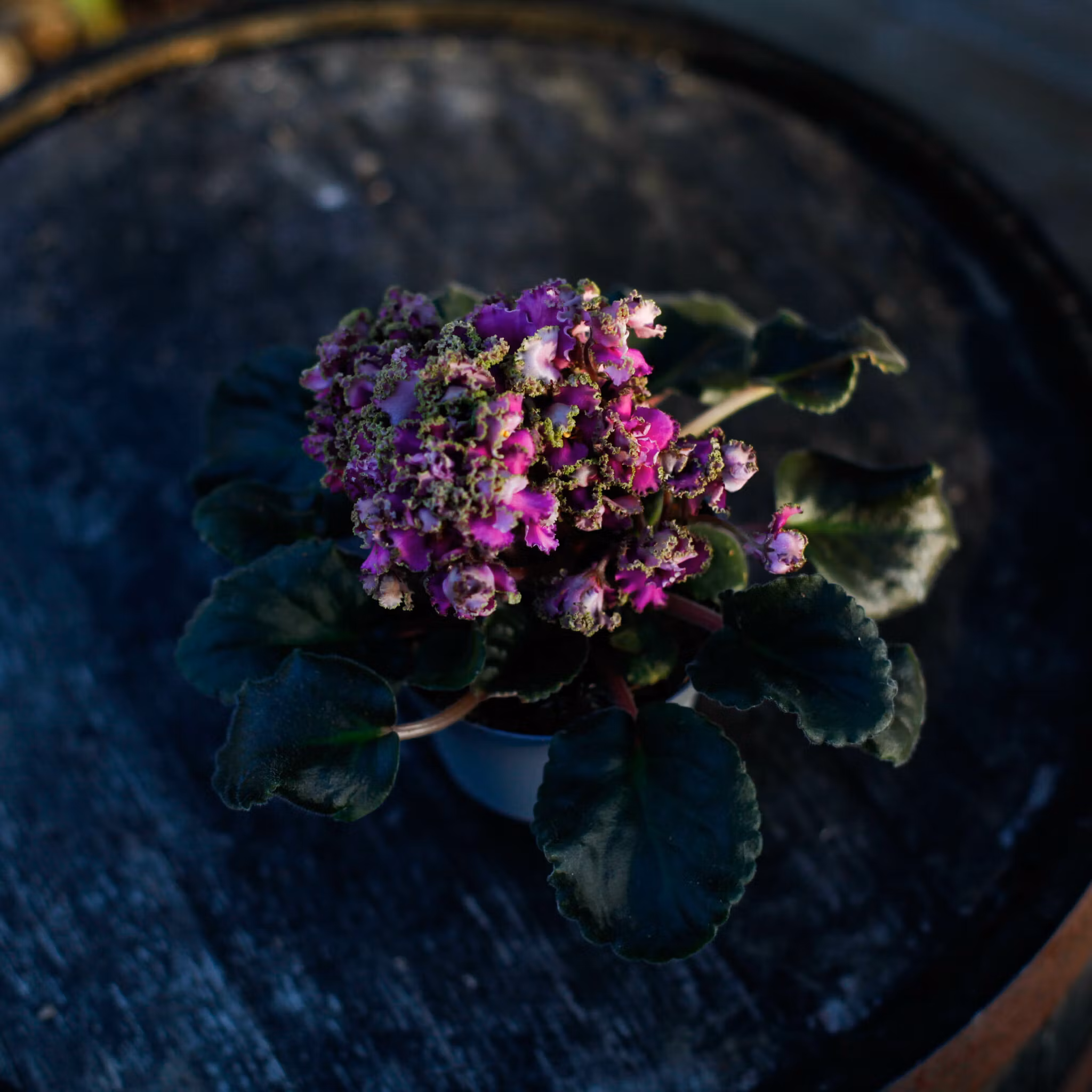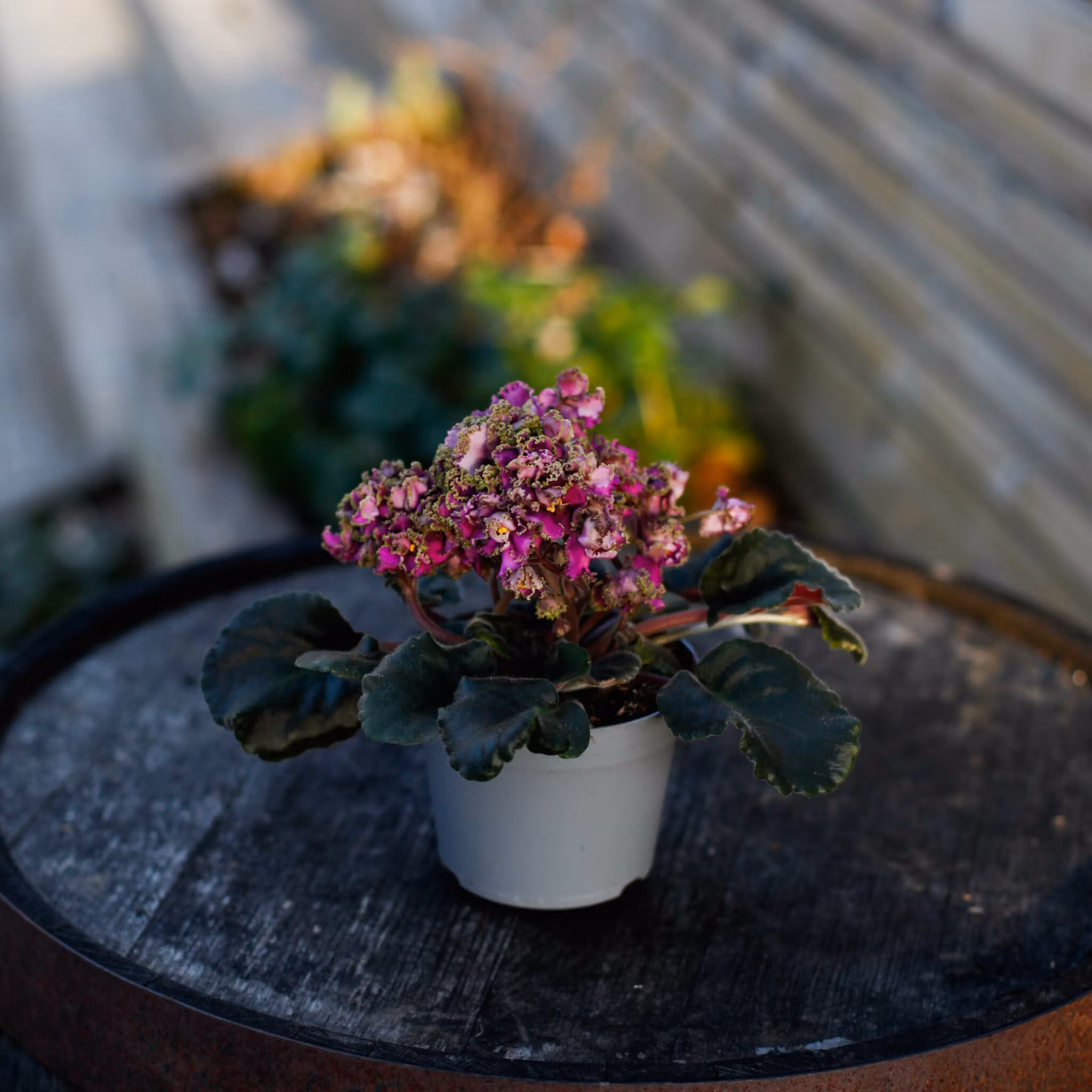 Köp unik Saintpaulia curly! Perfekt rosa/lila blomsterprakt i 12 cm kruka. Vacker mormorsväxt Online.