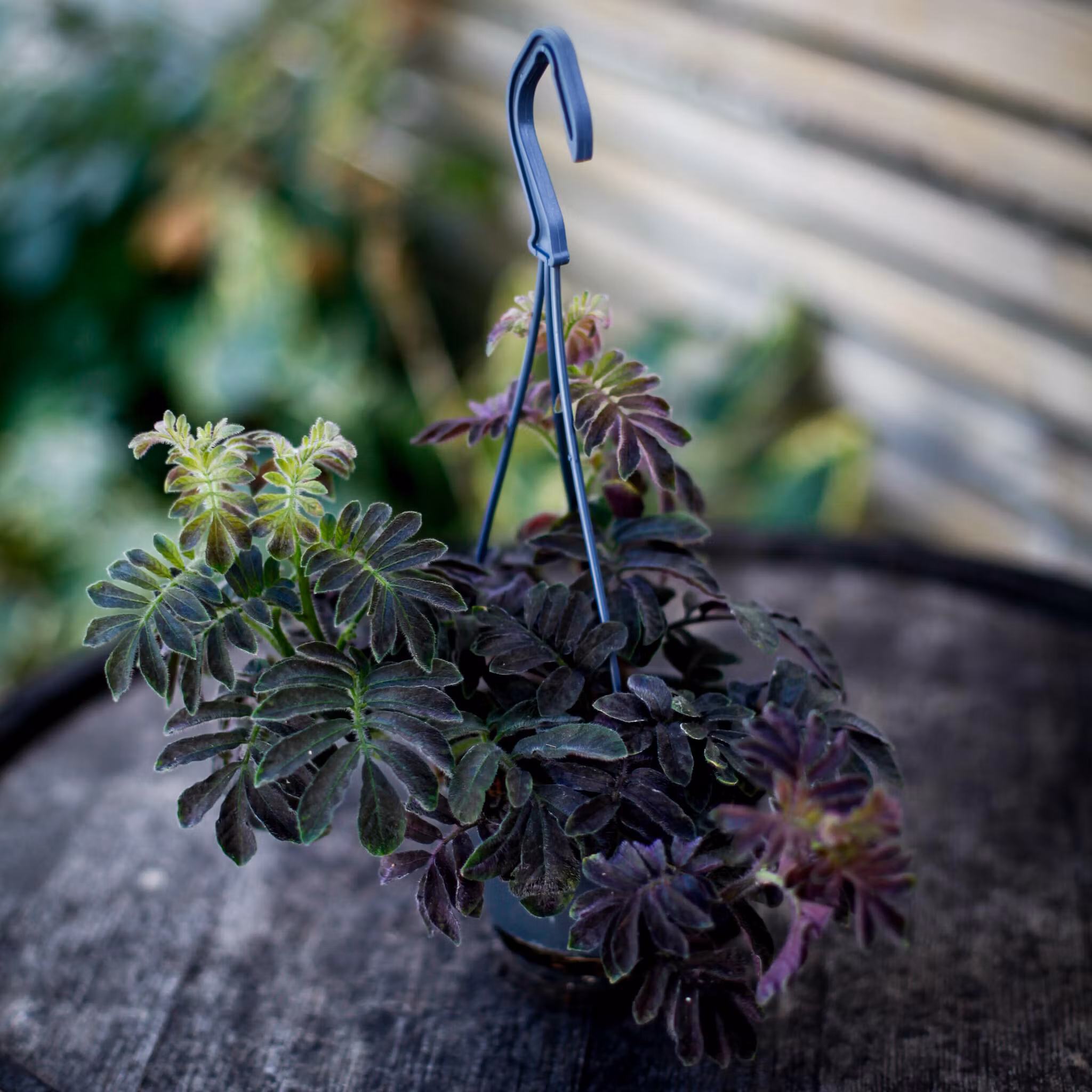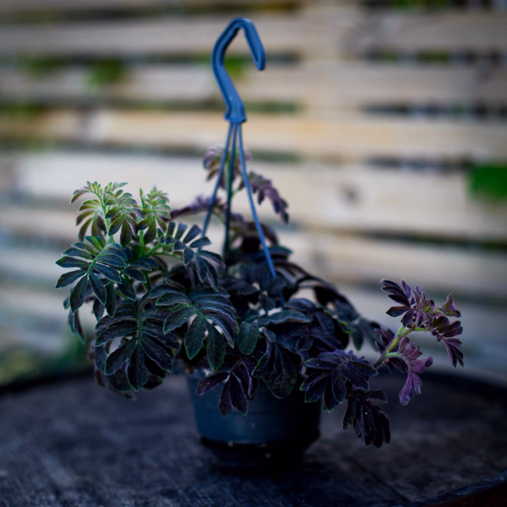 Solanum uleanum är en ovanlig och vacker hängväxt med purpurfärgade bladverk. Den är känd för sina unika blad och slingrande rankor, vilket gör den perfekt att odla i en ampel där dess naturliga, hängande växtsätt kan komma till sin rätt. Med sin lättskötta natur och dekorativa tillväxt är Solanum uleanum ett spännande val för den som vill ha något annorlunda i sin växtsamling.