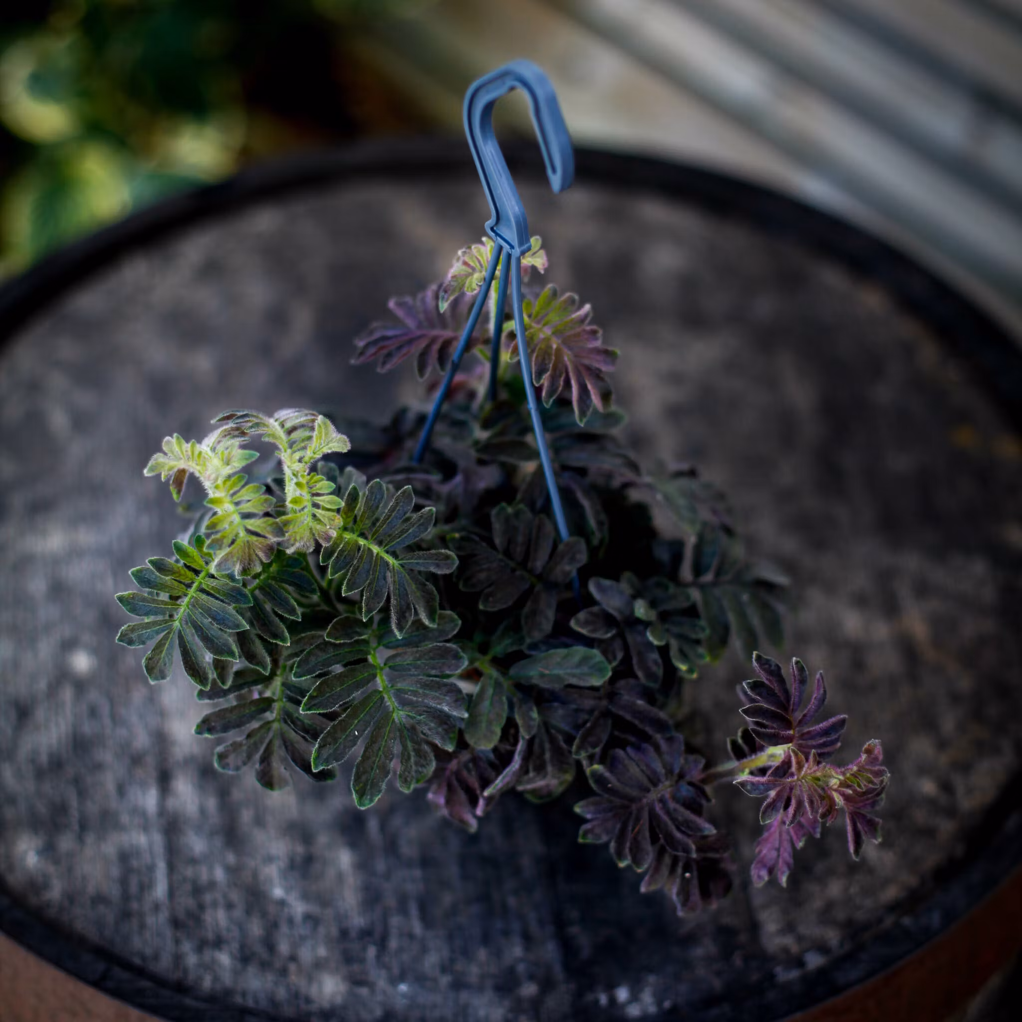 Solanum uleanum i ampel - en ovanlig, purpurfärgad hängväxt med slingrande rankor. Perfekt för en exotisk touch i hemmet. Lättskött och dekorativ! 🌿