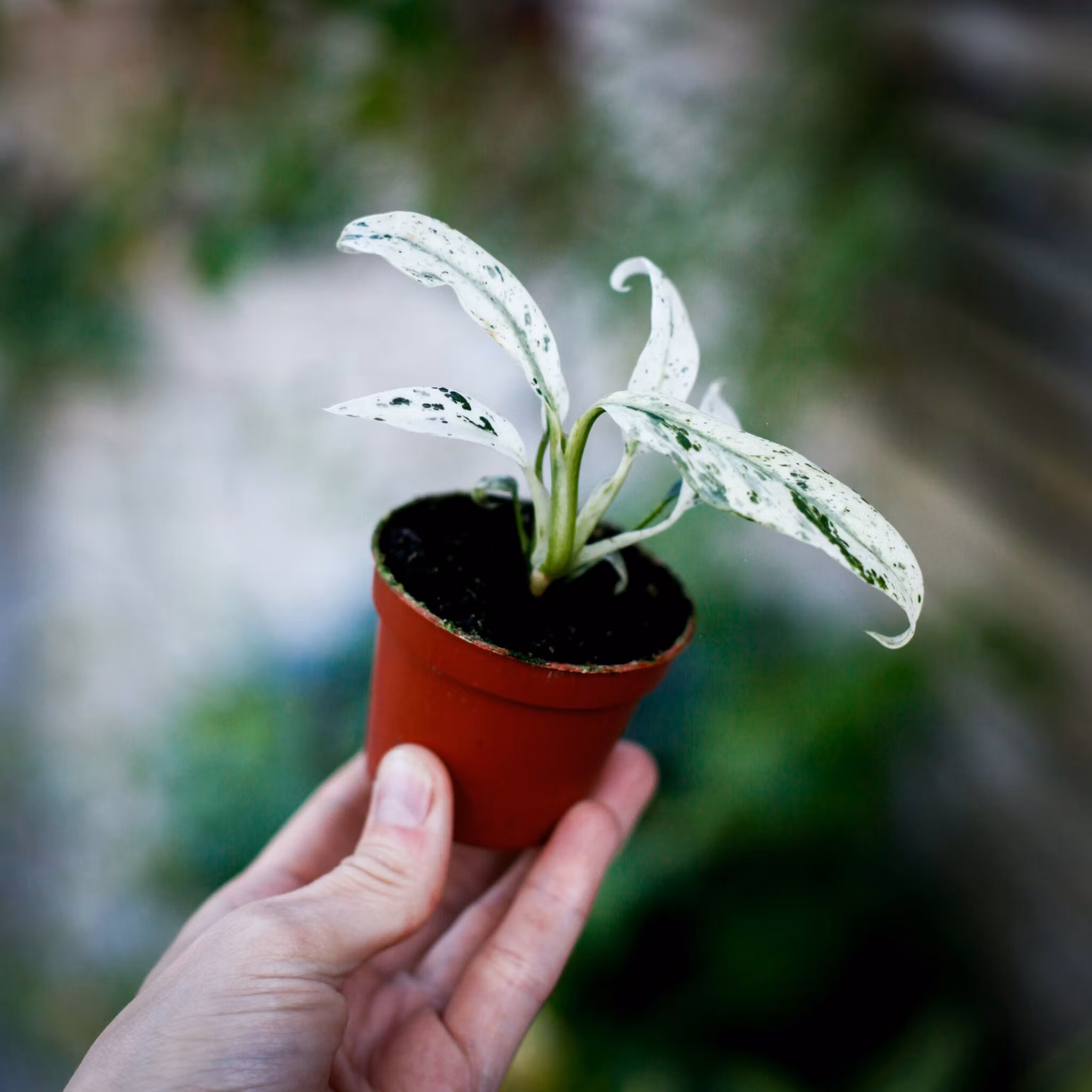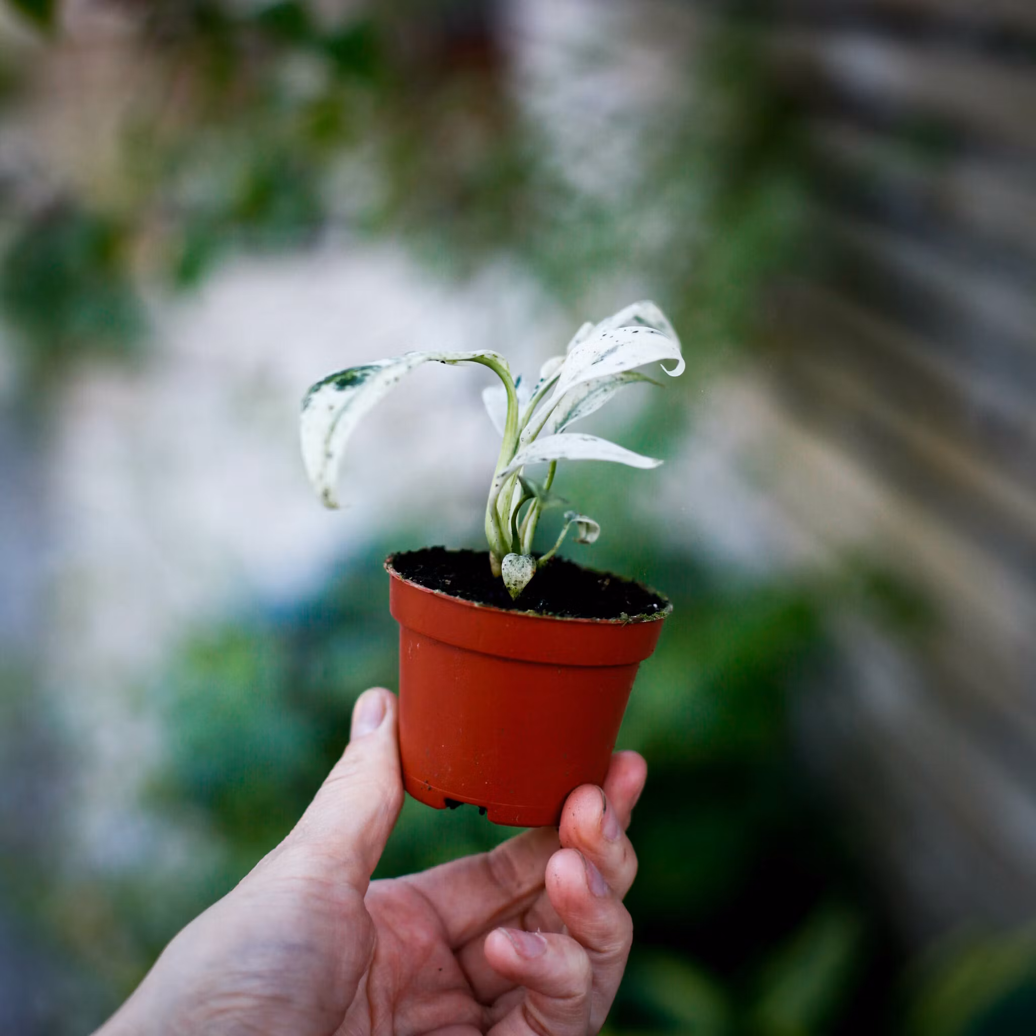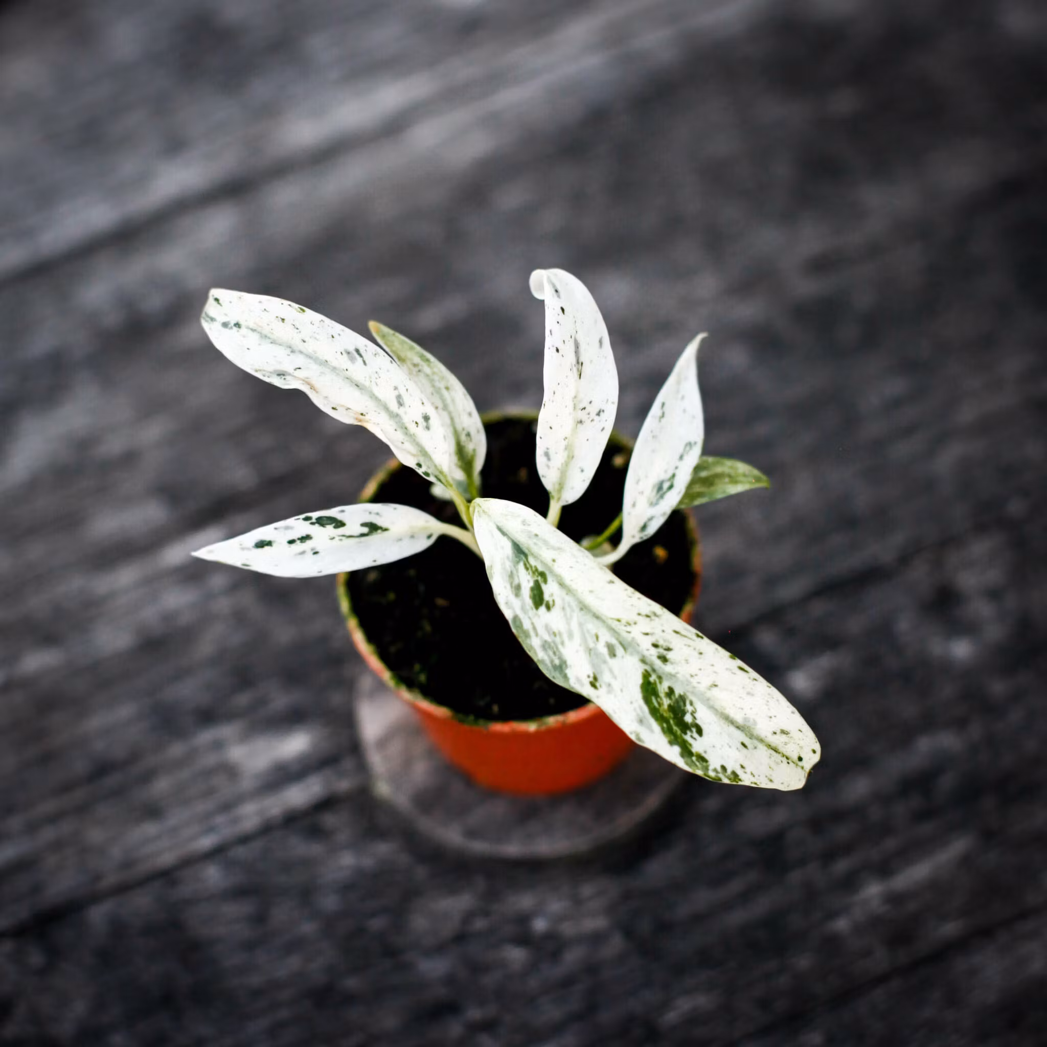 Rhaphidophora puberula 'Variegata' – en sällsynt klätterväxt med vit variegering, perfekt för växtälskare som söker något unikt. Beställ idag hos Klorofyllverke