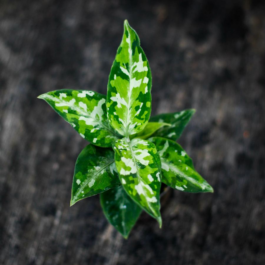 Aglaonema 'Tricolor' 6 cm är en ovanlig och vacker Silverkalla med unika camouflagemönstrade blad. Köp hos Klorofyllverket