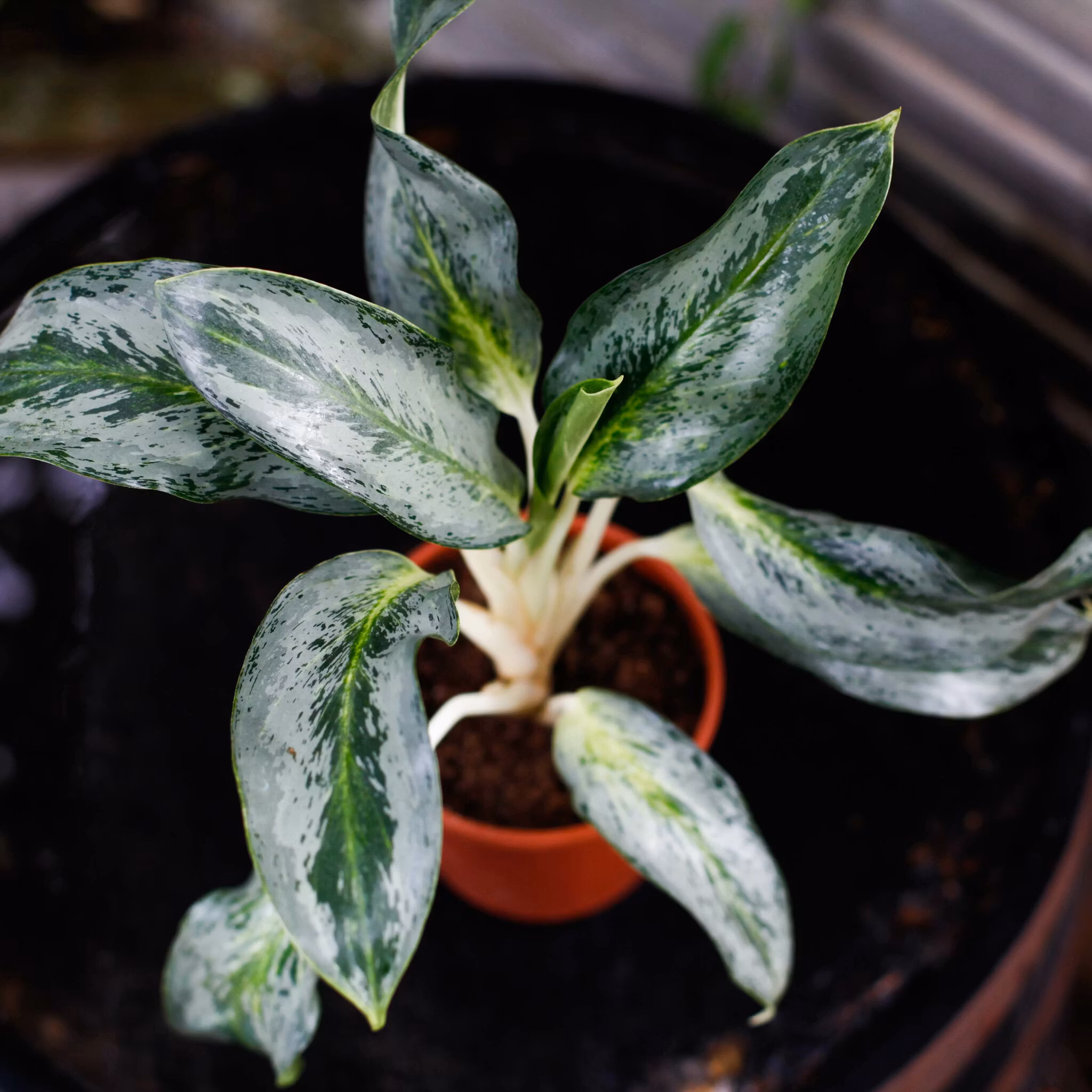 Fantastisk Aglaonema som inte är så vanlig! Väldigt lättskött skuggväxt och klarar av att stå i norrfönster.