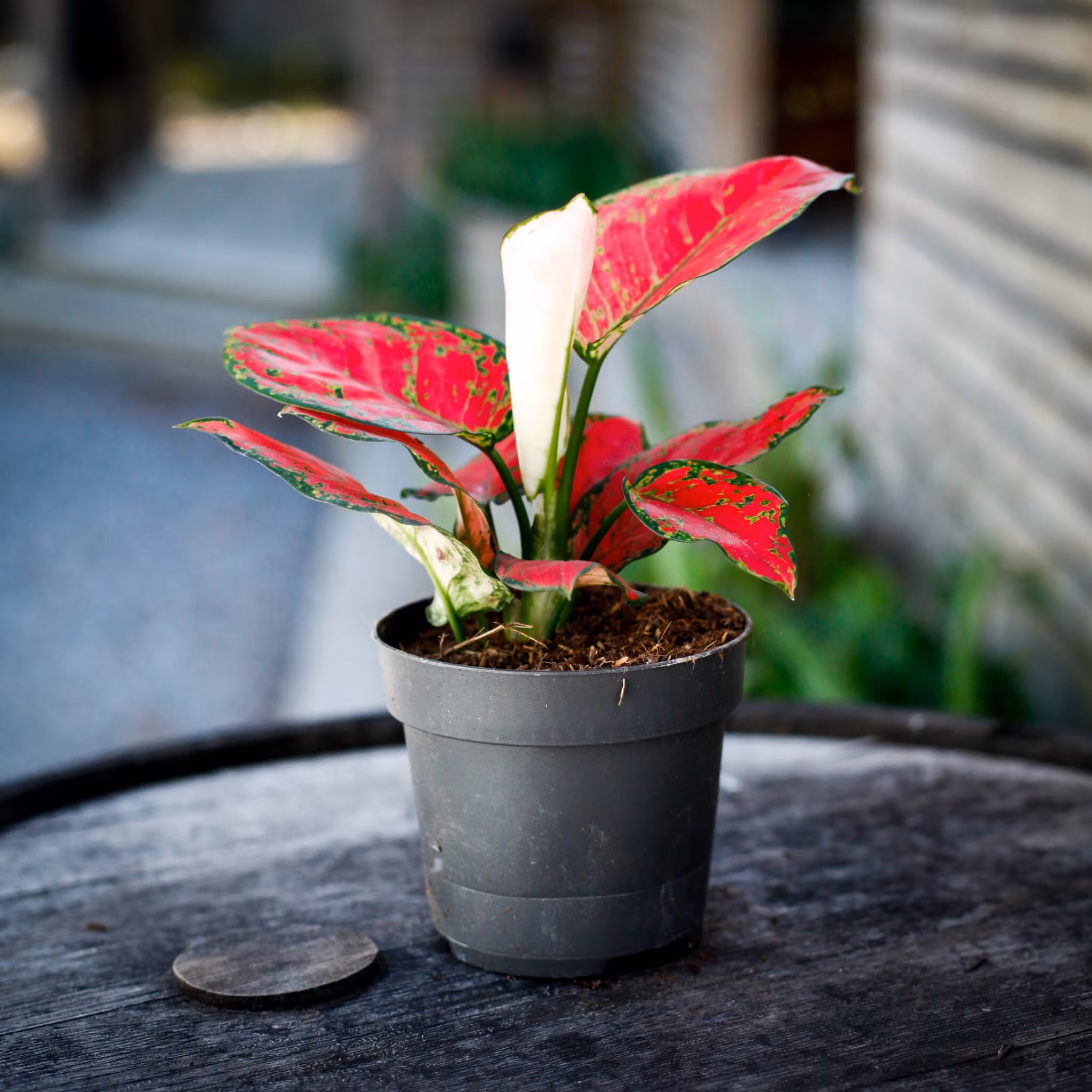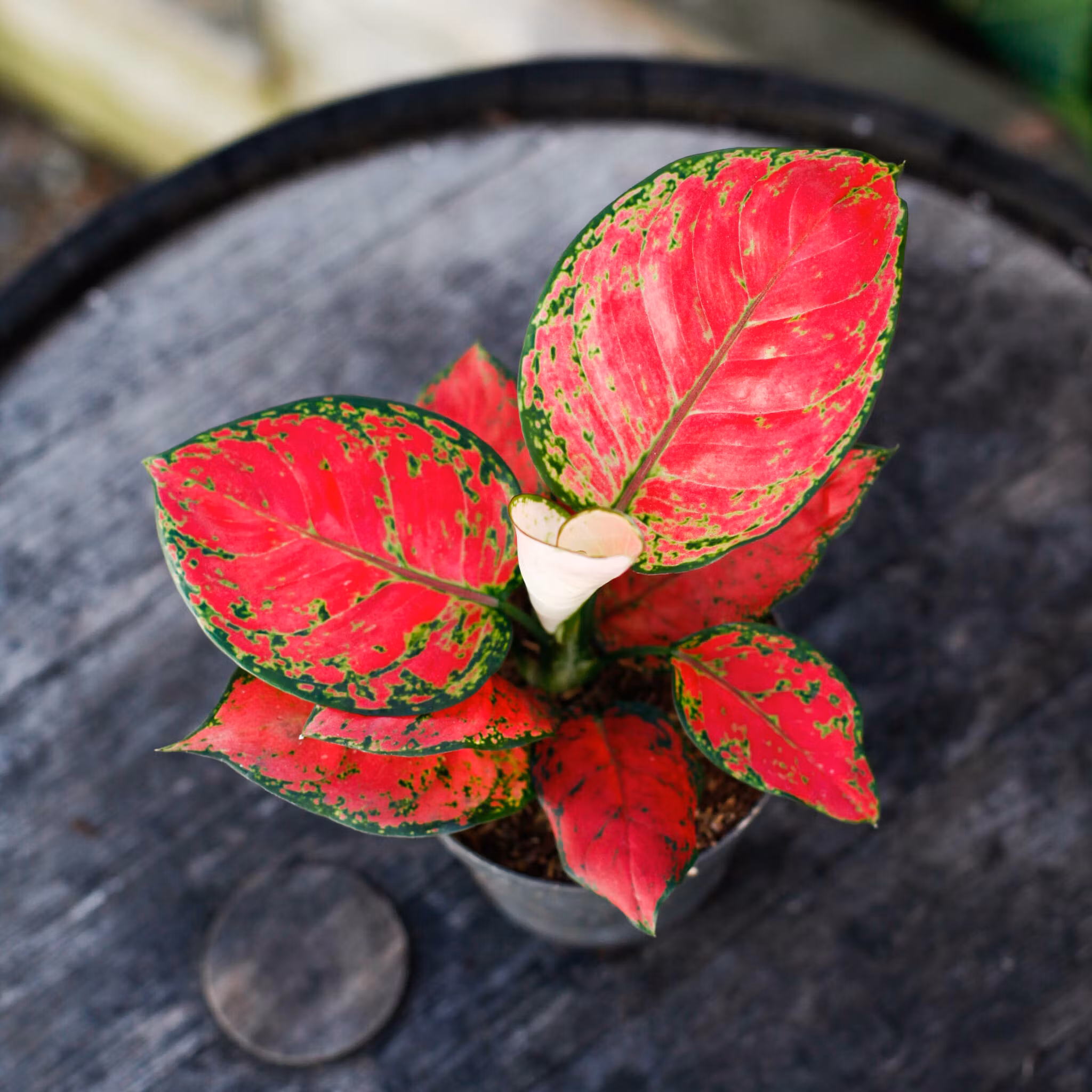 Aglaonema 'Red Joy' - en färgstark inomhusväxt som lyser upp ditt hem. Lättskött och tålig, perfekt för både nybörjare och erfarna växtälskare.🌿