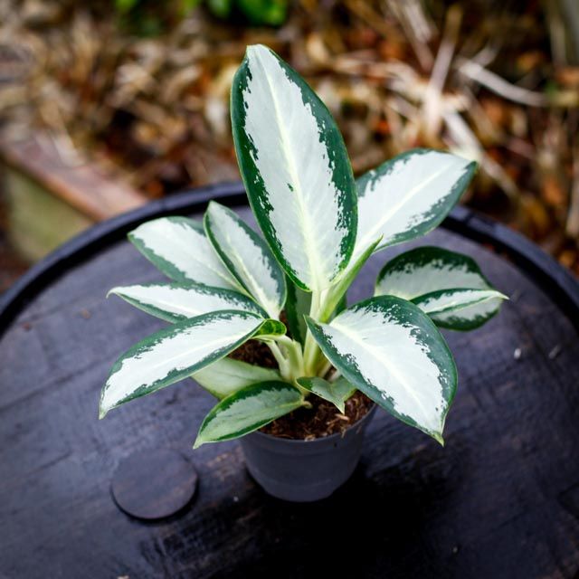 Aglaonema 'Silver Blue' - en elegant växt med grön-silvriga blad, perfekt för ljusa inomhusmiljöer. Enkel skötsel och unik i varje exemplar.