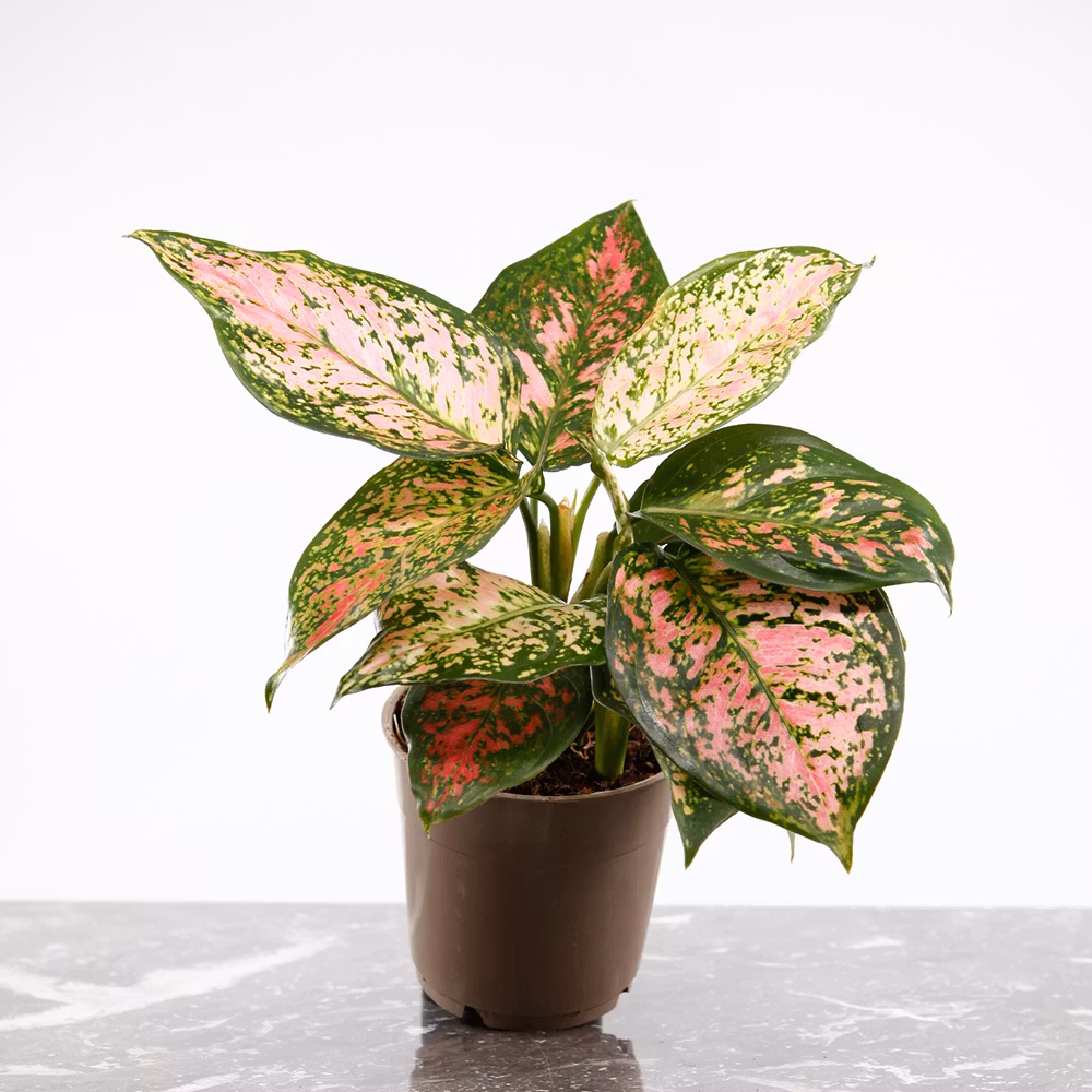 Aglaonema 'Spotted Star' är en fascinerande och färgstark växt som imponerar med sina unika blad. Denna sort har ljusgröna blad dekorerade med livliga, rosa stänk som verkligen fångar ögat. Perfekt för att ge liv och färg åt ditt hem eller kontor, och dessutom är den både lättskött och tålig.