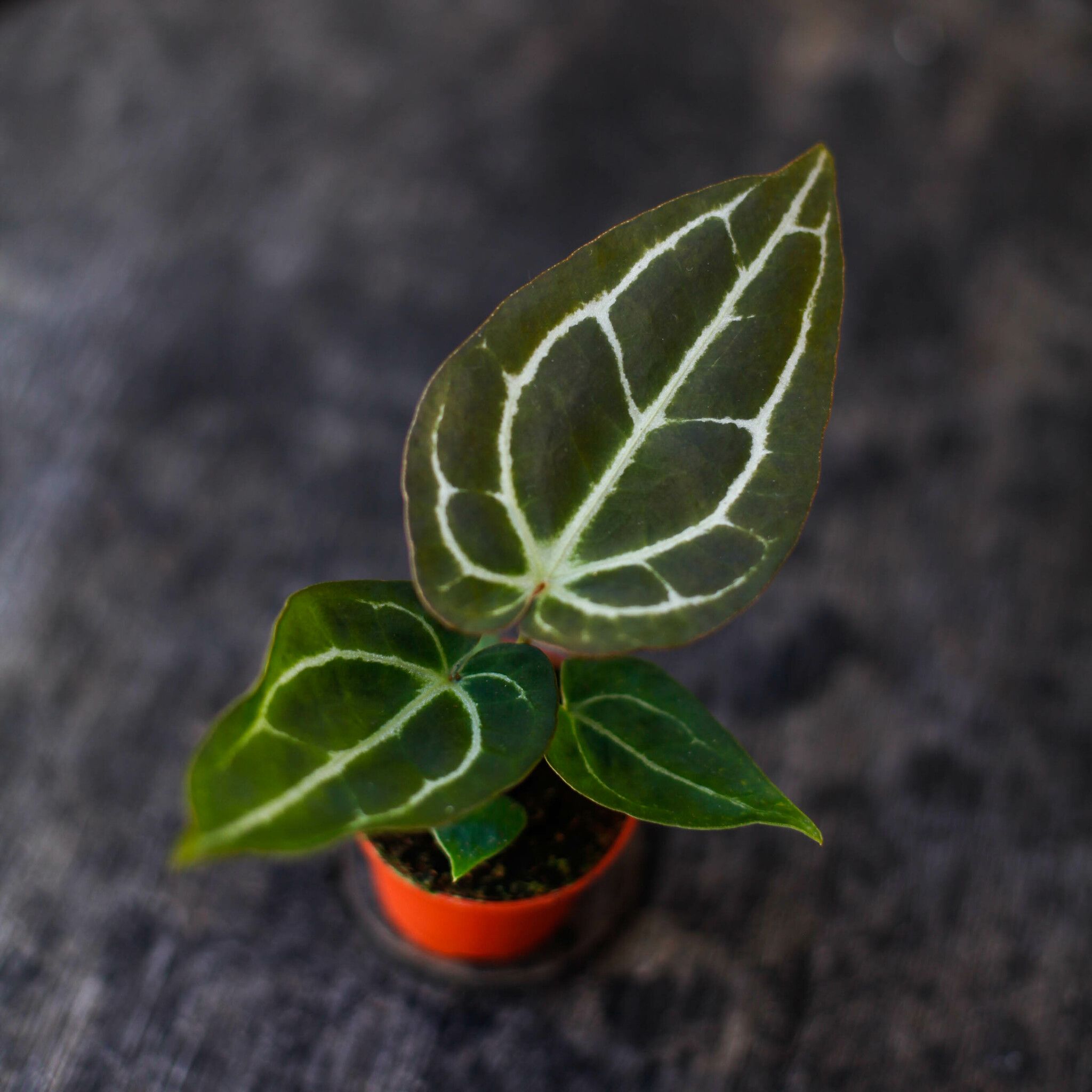 Anthurium crystallinum är den perfekta växten för den som vill ha något både lyxigt och dekorativt. Med sina slående silvermönstrade blad blir den en naturlig mittpunkt i alla rum och tillför en tropisk och sofistikerad atmosfär till ditt hem.