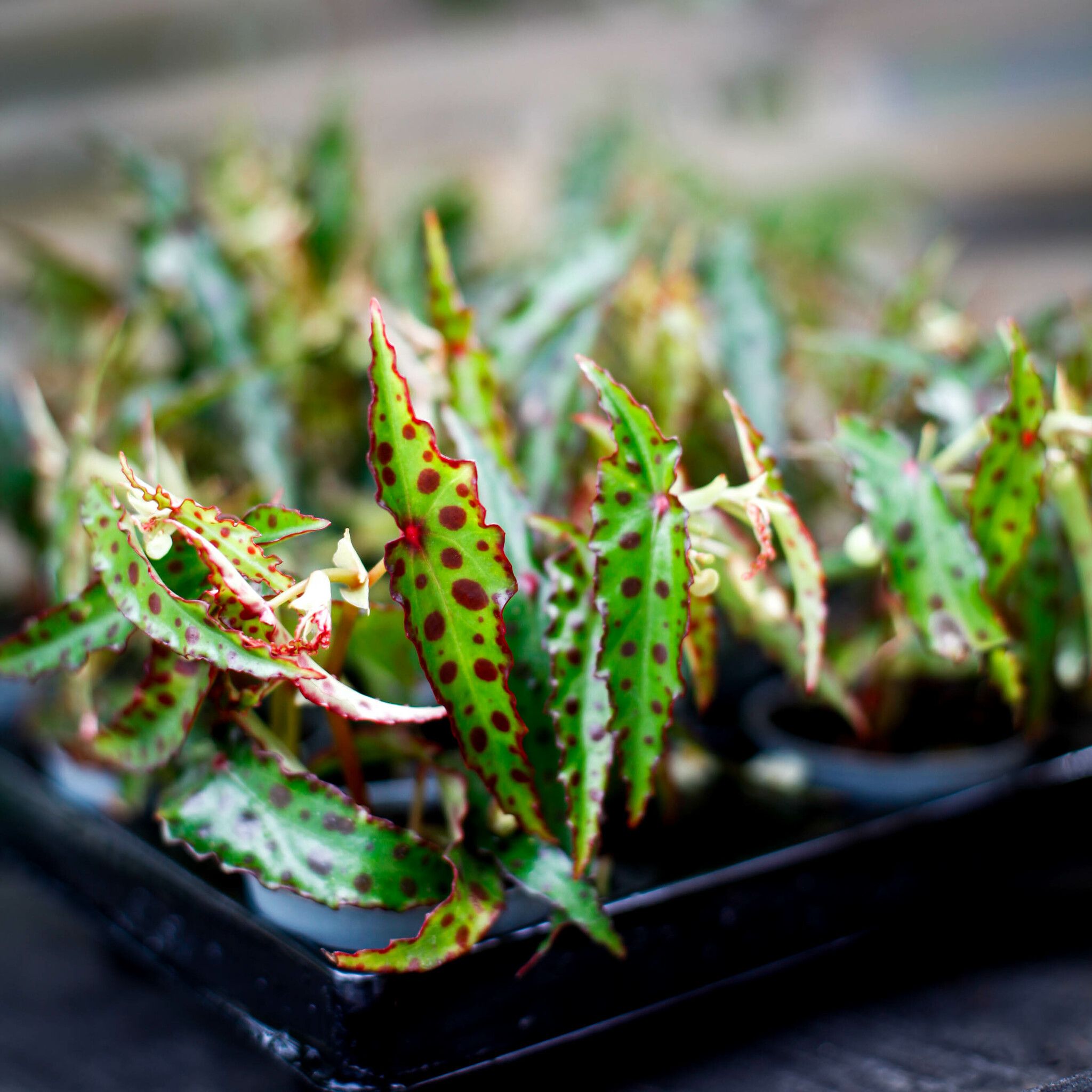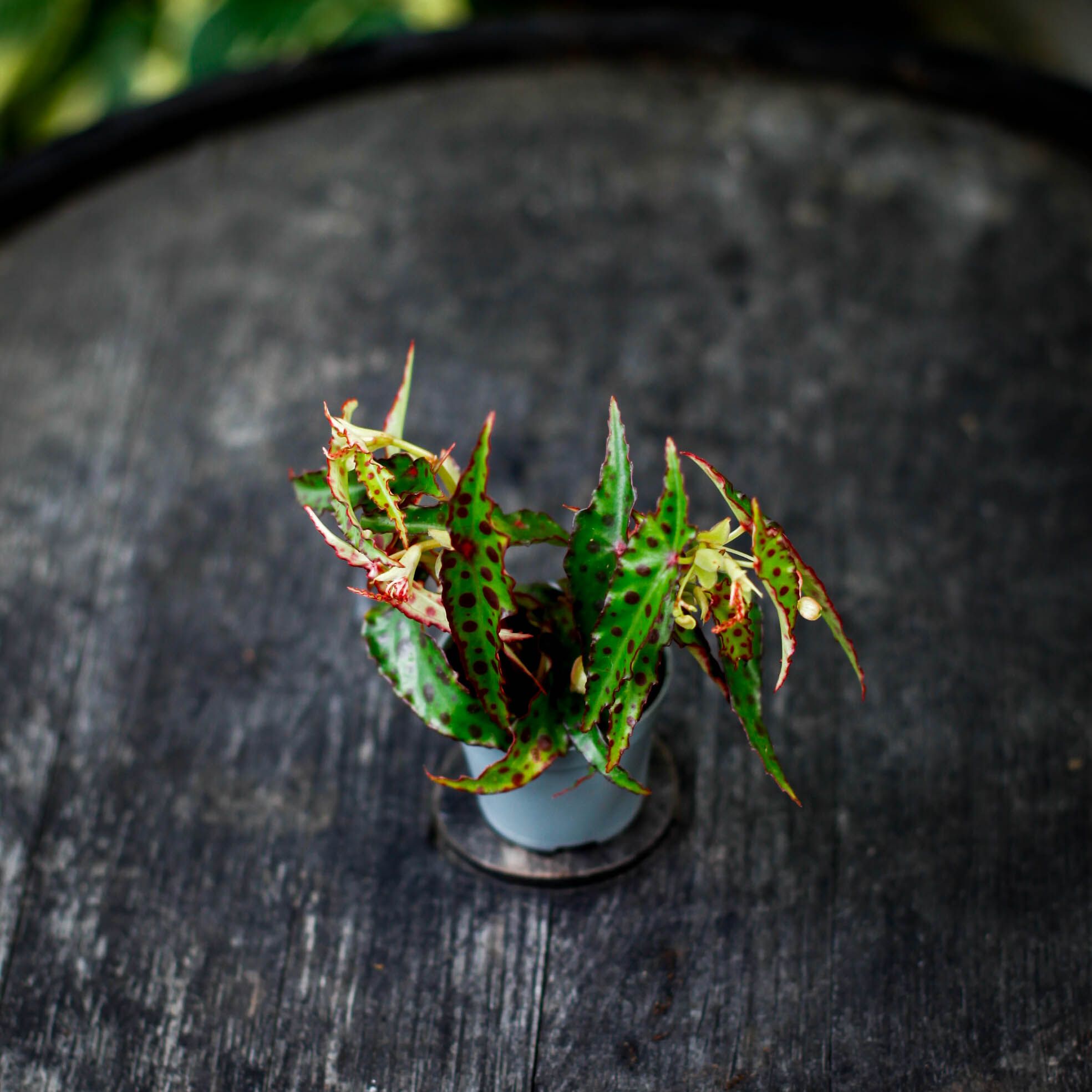 Den vackra Begonia amphiox i 6 cm kruka är inte bara estetiskt tilltalande utan också lätt att sköta, vilket gör den perfekt för inomhusmiljöer eller terrarier.
