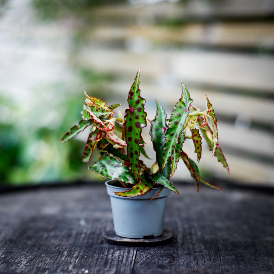 Den vackra Begonia amphiox i 6 cm kruka är inte bara estetiskt tilltalande utan också lätt att sköta, vilket gör den perfekt för inomhusmiljöer eller terrarier.