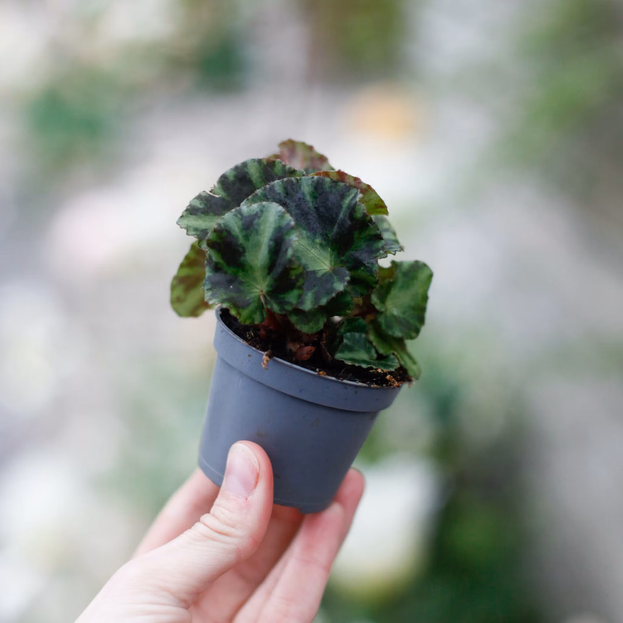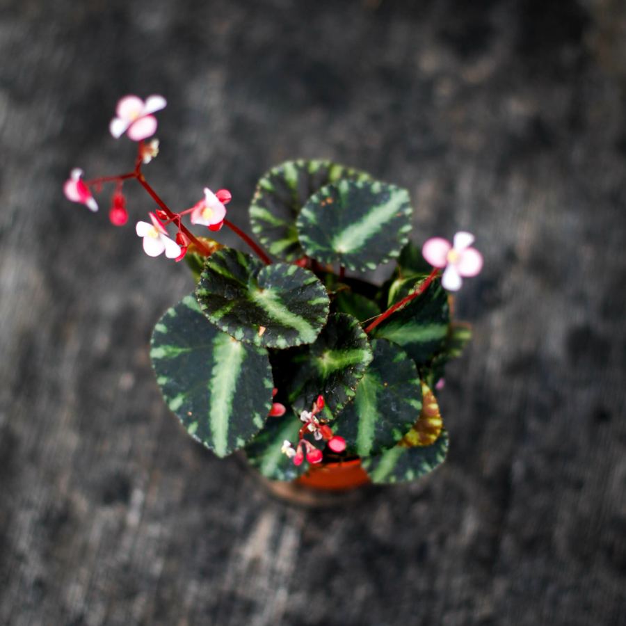 Begonia 'Cleopatra' i 6 cm kruka kännetecknas av sina ovala, mörkgröna blad med rödaktiga undersidor. En kompakt och lättskött växt som trivs i halvskugga, perf