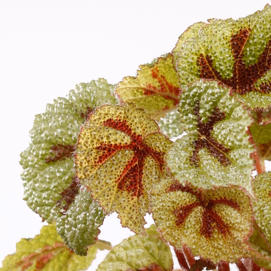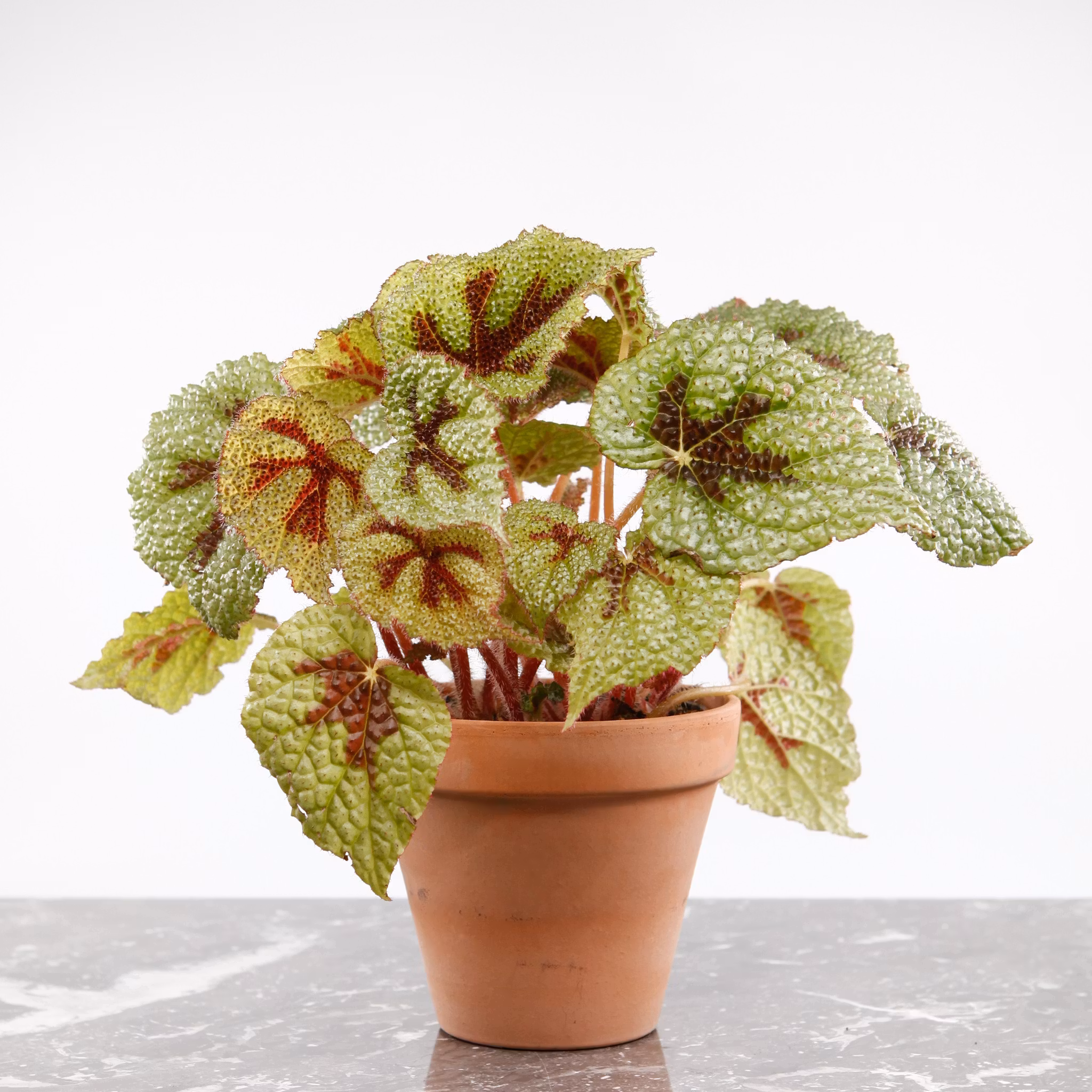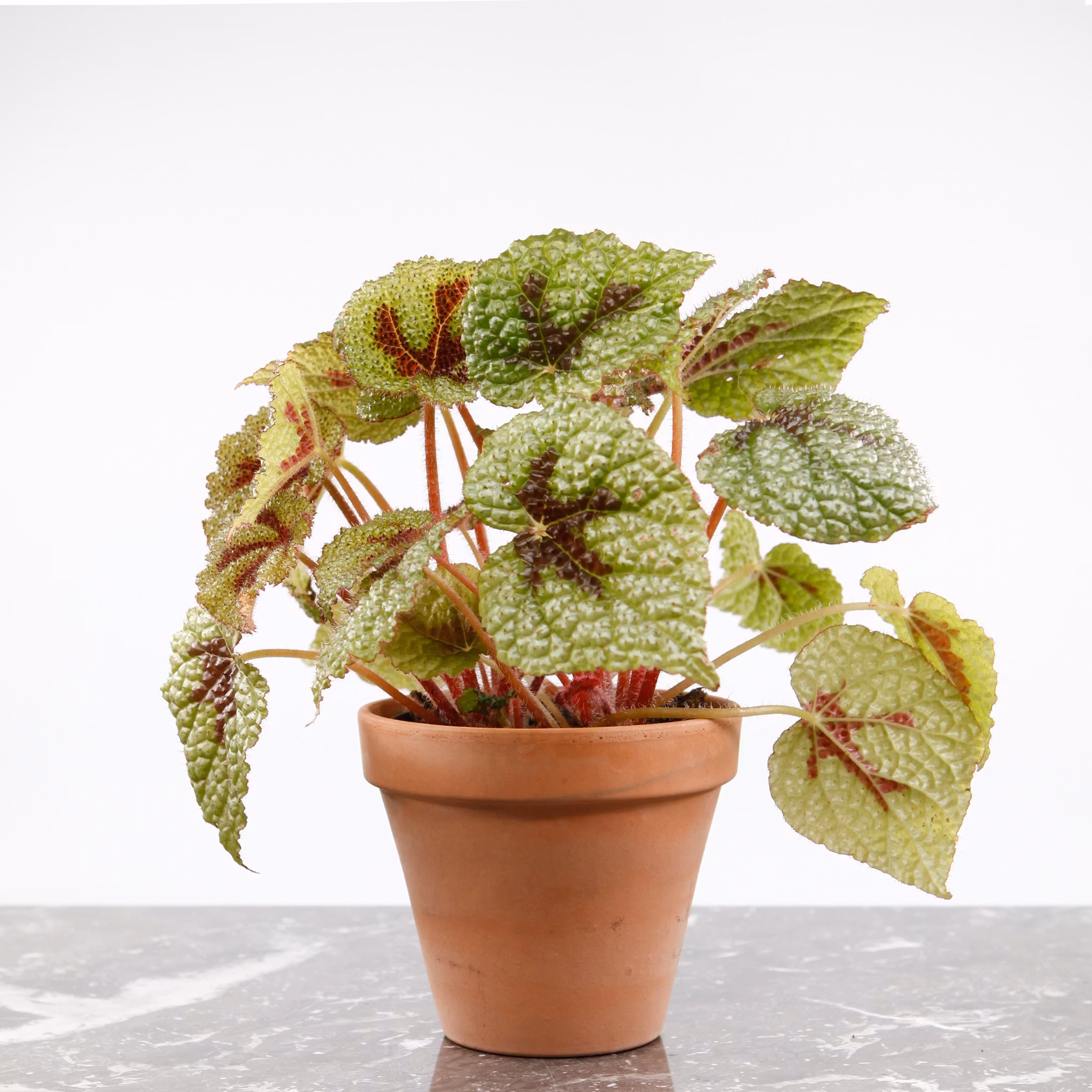 Unik Begonia 'Iron Cross' 12cm med sina karaktäristiska korsmönstrade blad. En iögonfallande och lättskött växt som passar perfekt för inomhusmiljöer.