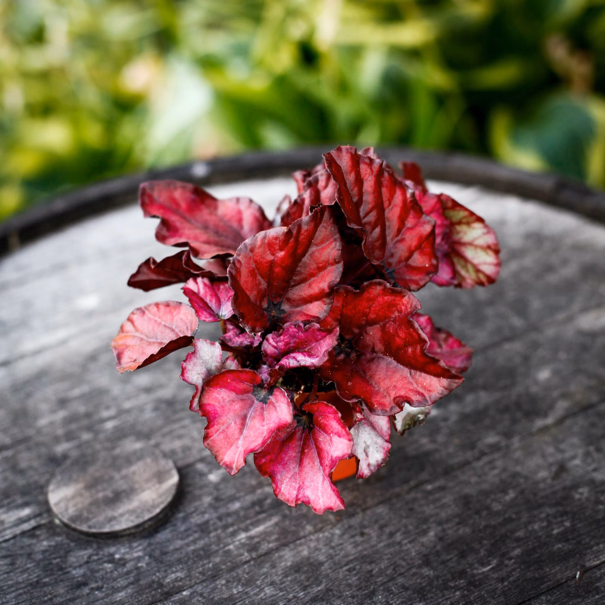 Begonia Magic Colours 'Red Bull' är en spektakulär växt som säljs för sina unika och häftiga blad i djupa röd- rosa toner. Denna begonia-sort är perfekt för den som söker en växt med dramatisk färg och en exotisk känsla, och den är ett utmärkt val både för inomhusplantering och för att addera färg på en skyddad uteplats. Med sina vackra, kontrasterande blad blir den snabbt en central detalj i ditt hem.
