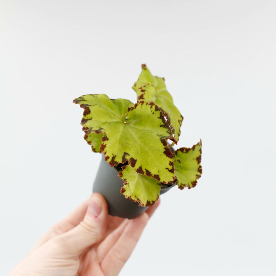 Begonia rex 'Red Jive' är en fantastisk bladbegonia som kommer att förtrolla dig med sina vackra limefärgade blad i läckra mönster. Denna lättskötta växt är ett perfekt val för alla som söker en färgstark och fascinerande tillskott till sin inomhusdjungel.