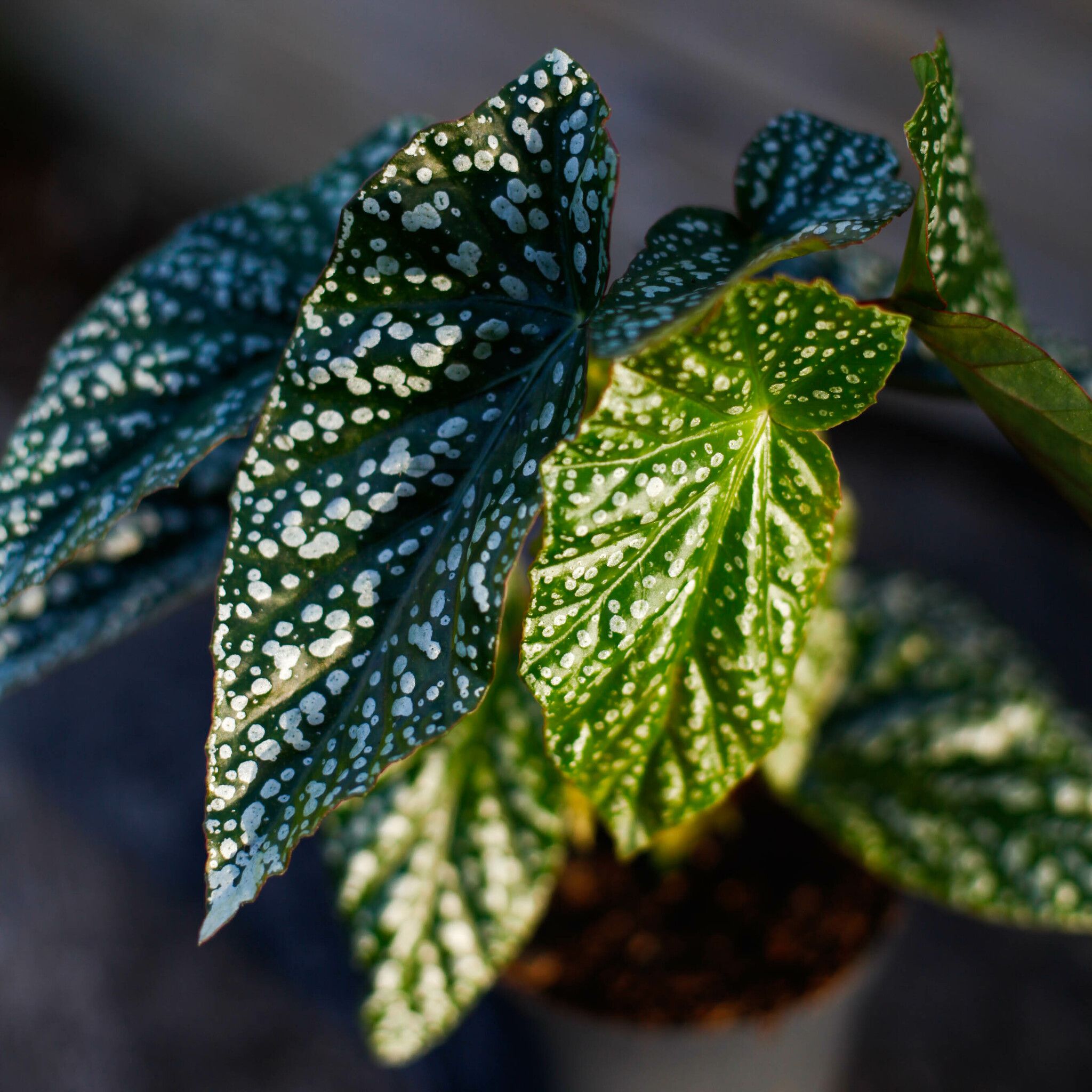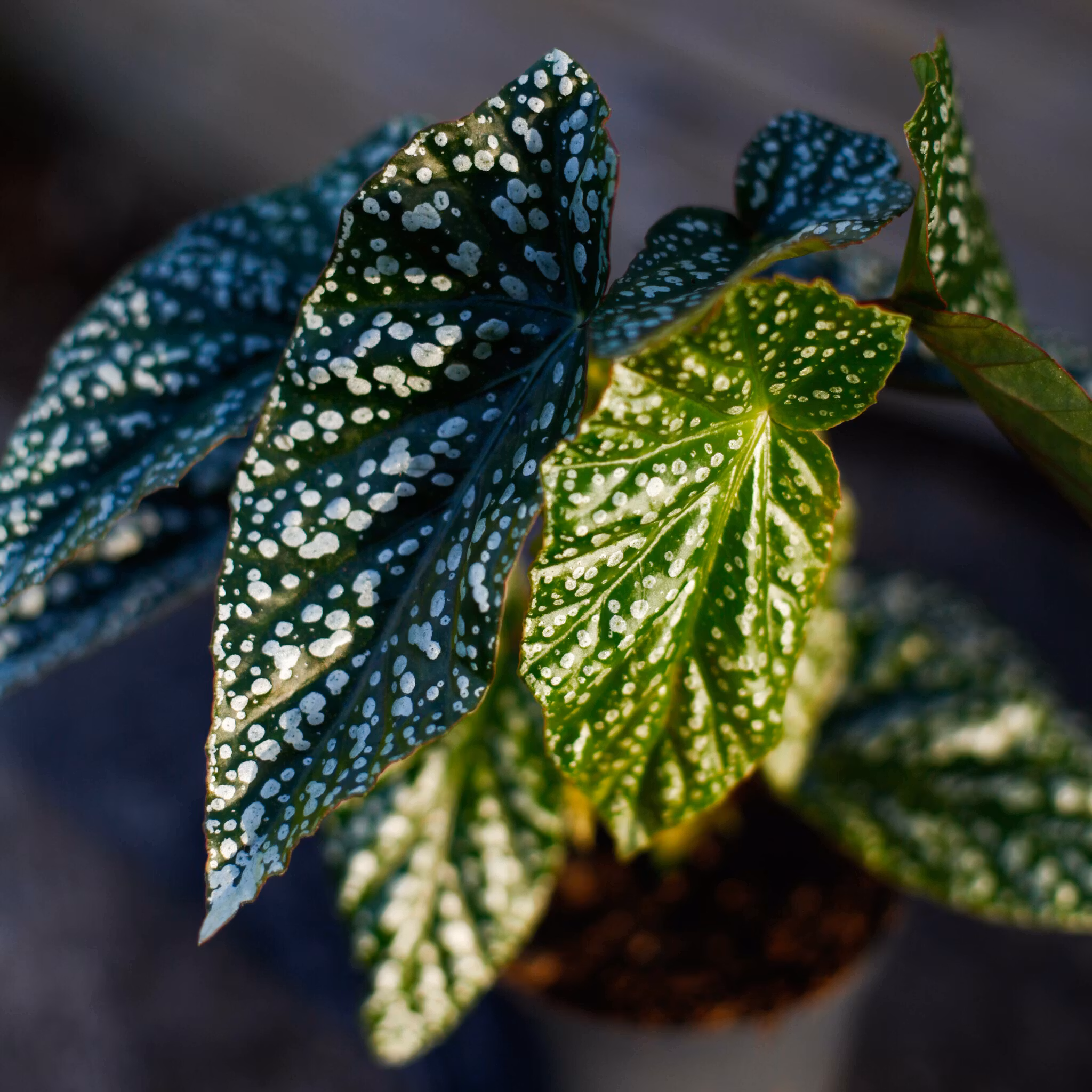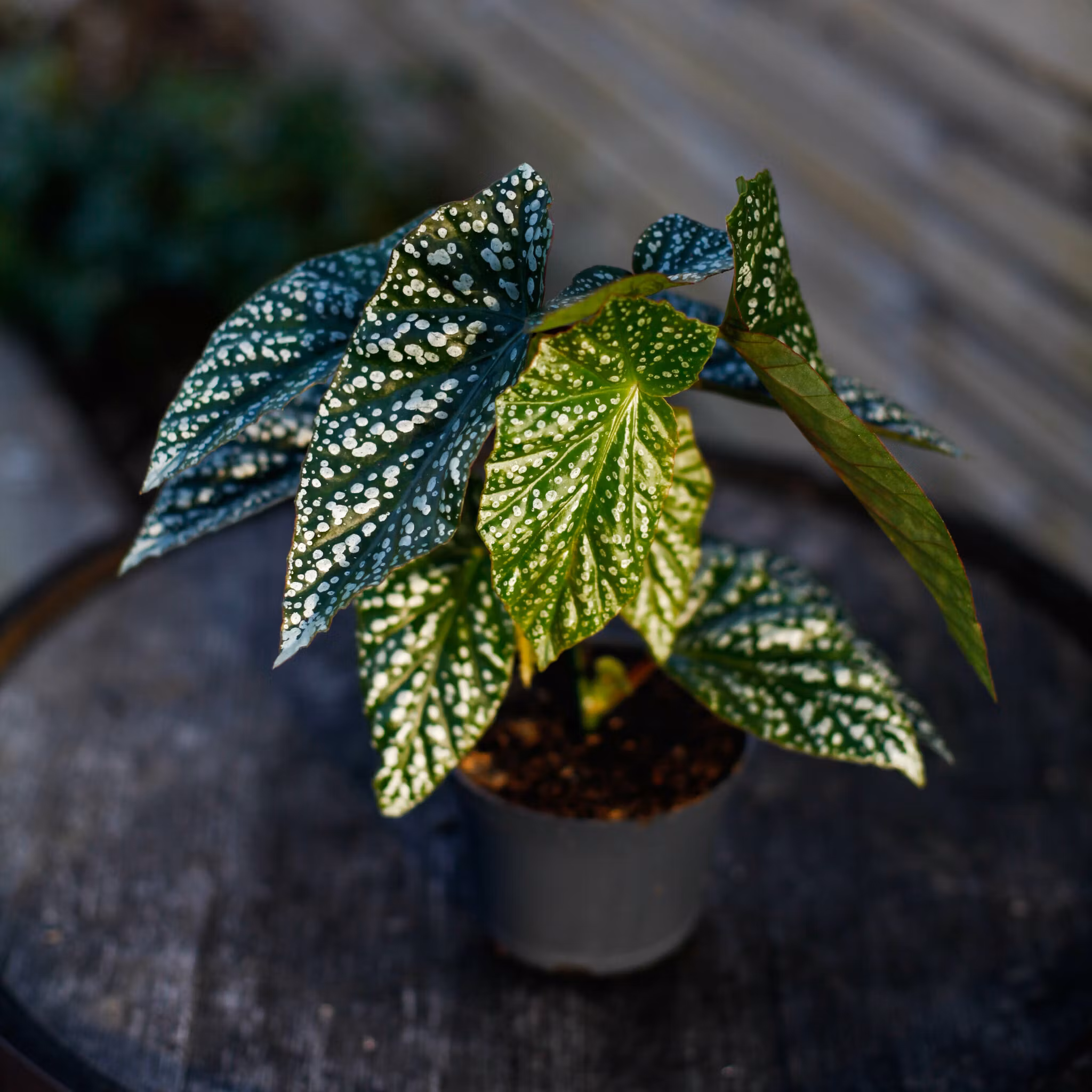 Begonia 'Änglavinge' är inte bara en syn att skåda, den är också mycket enkel att sköta. Den trivs i indirekt ljus och föredrar en fuktig miljö, vilket gör den till en idealisk val för rum med hög luftfuktighet, som badrummet eller köket.
