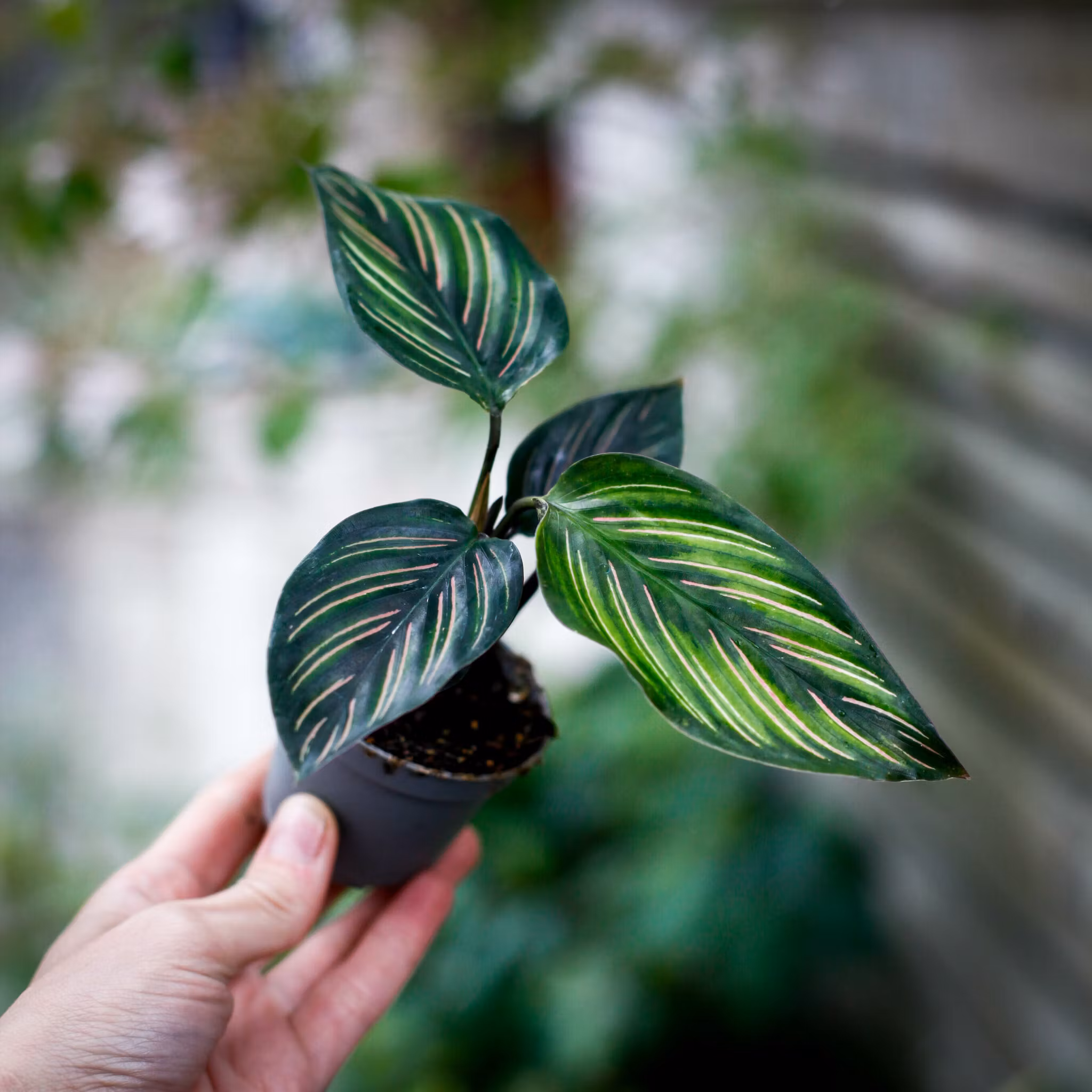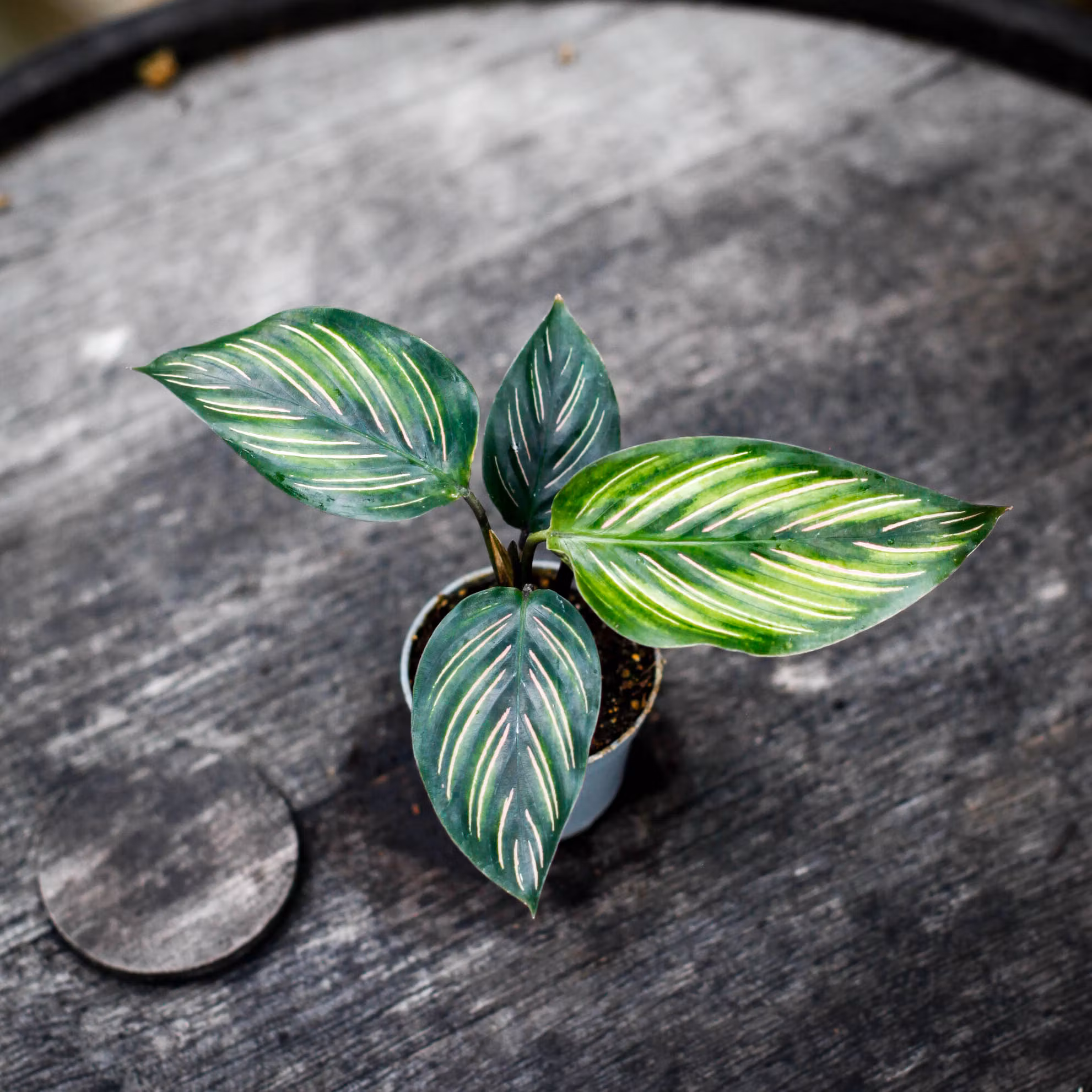 Köp Calathea 'Beauty Star' 6cm Kruka - en levande skulptur för ditt hem. Fascinerande bladrörelser och unika mönster som berikar din inomhusmiljö.