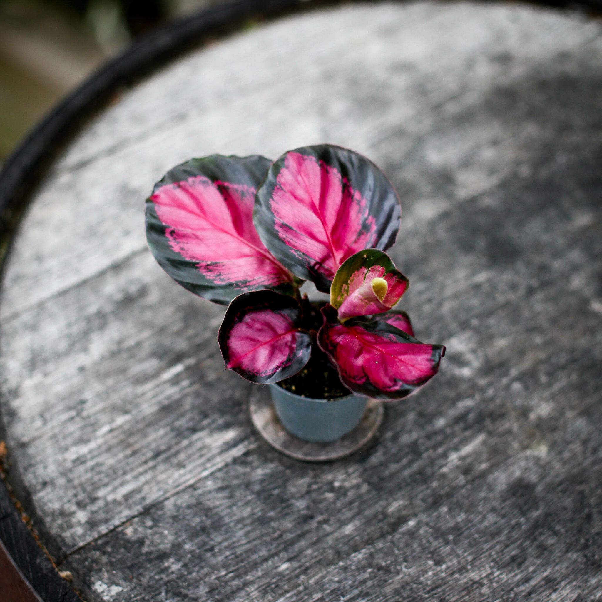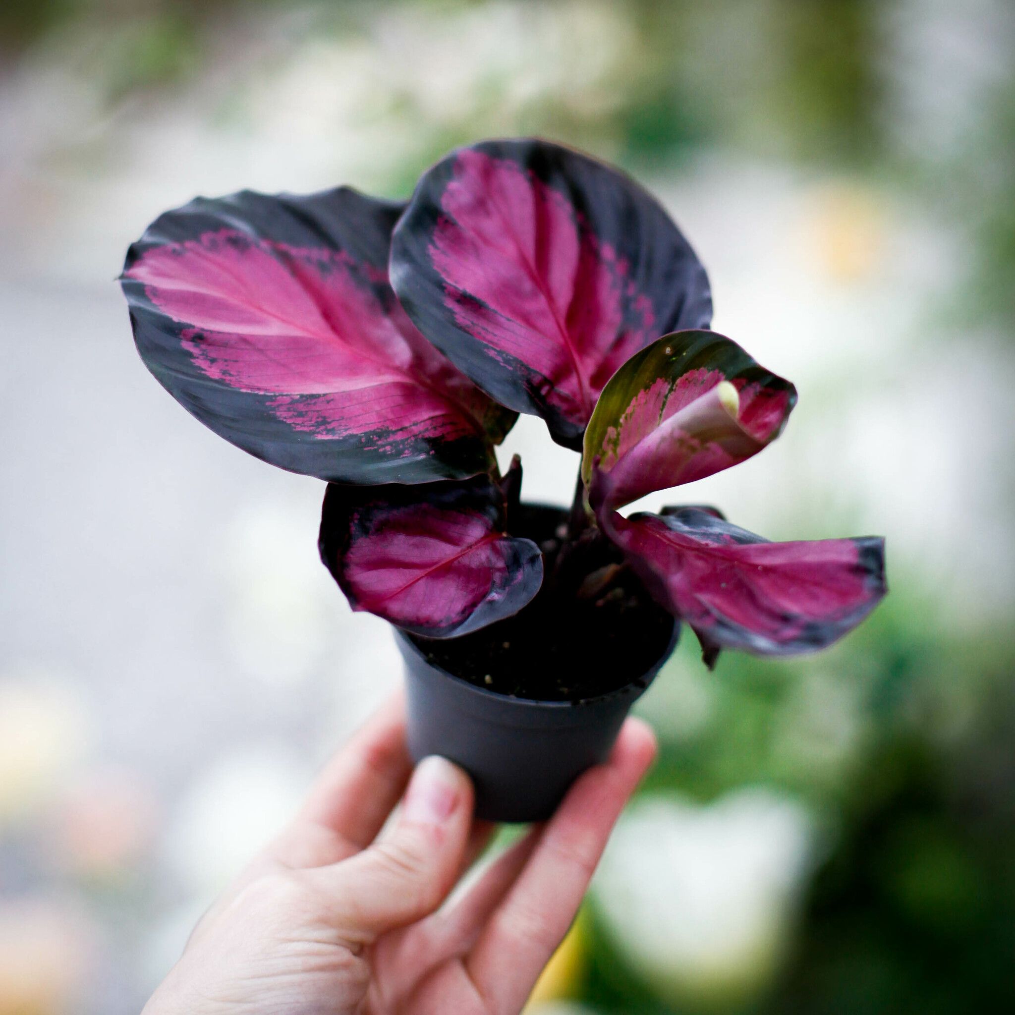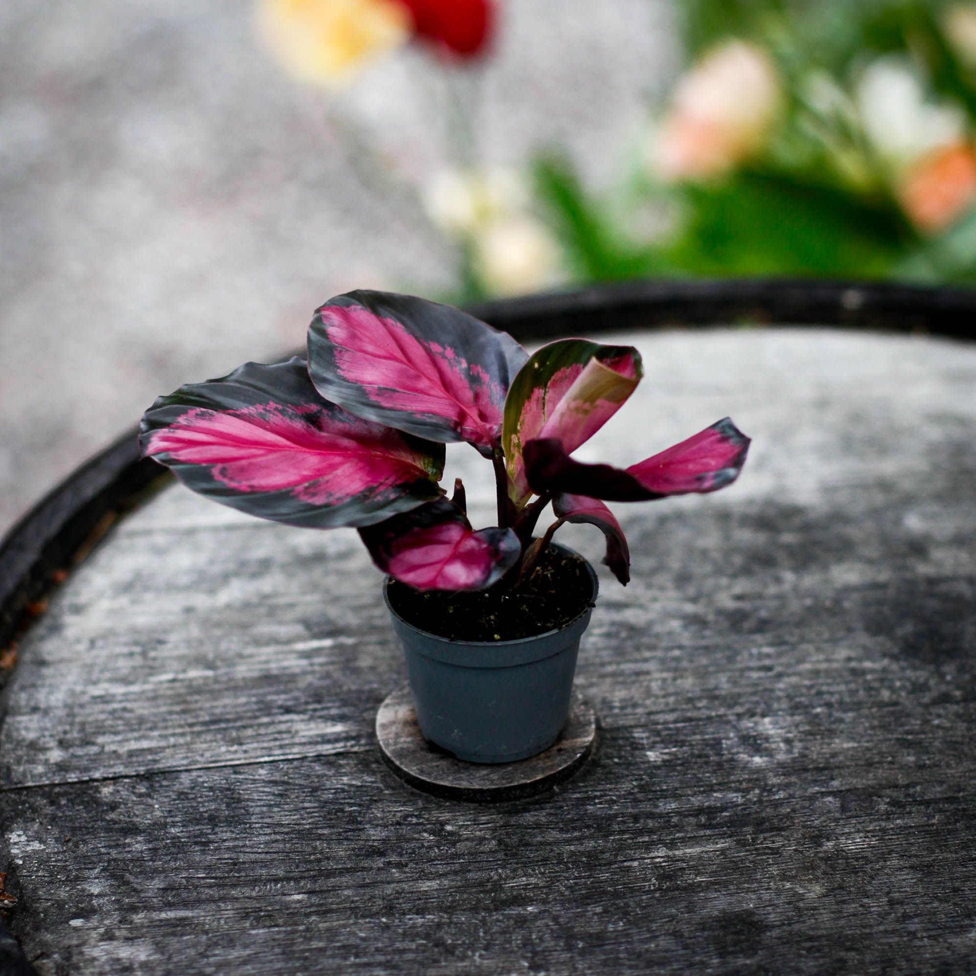 Calathea 'Rosy' 6 cm - En exotisk skönhet med färgstarka blad. Perfekt för att ge ditt hem liv och färg. Beställ nu hos Klorofyllverket!
