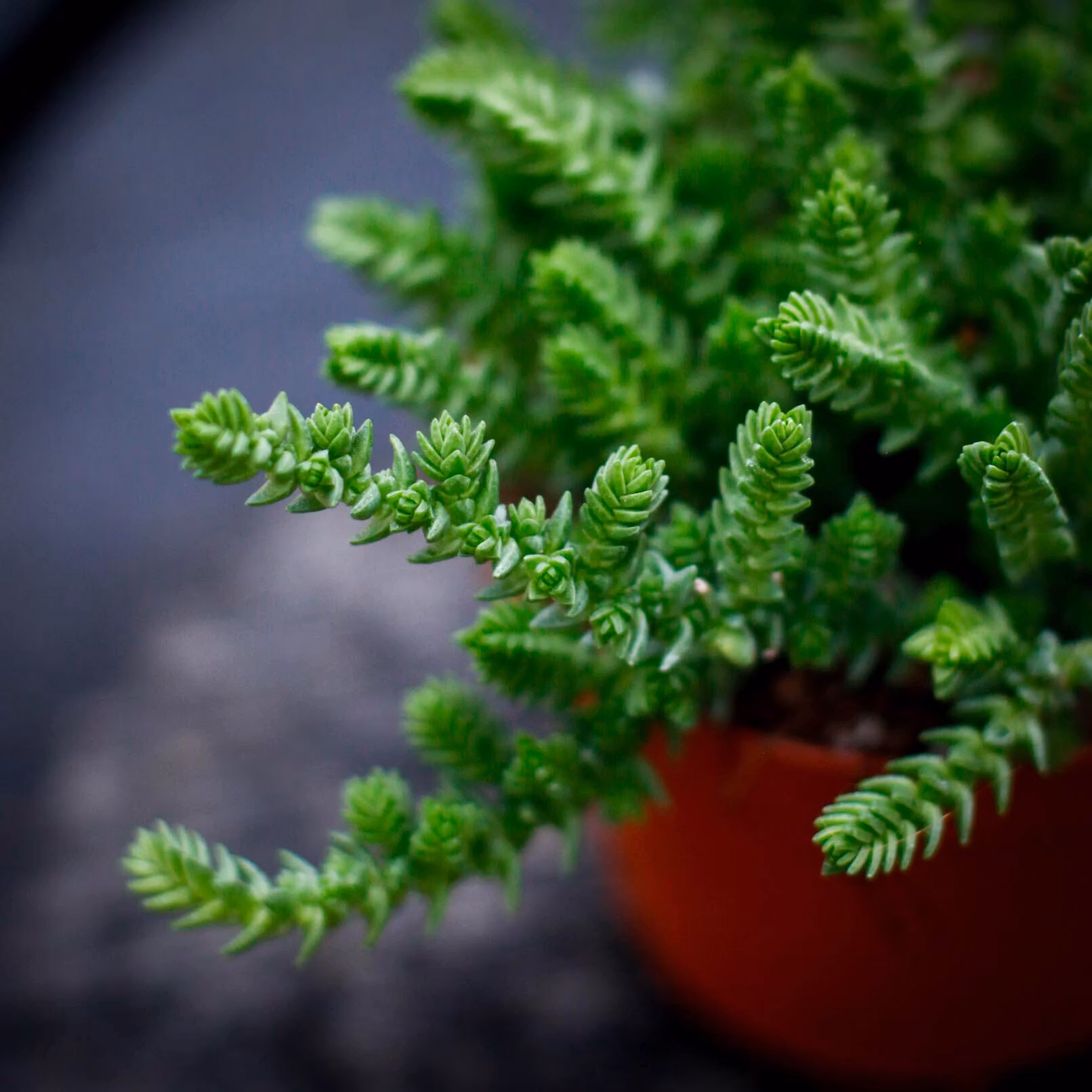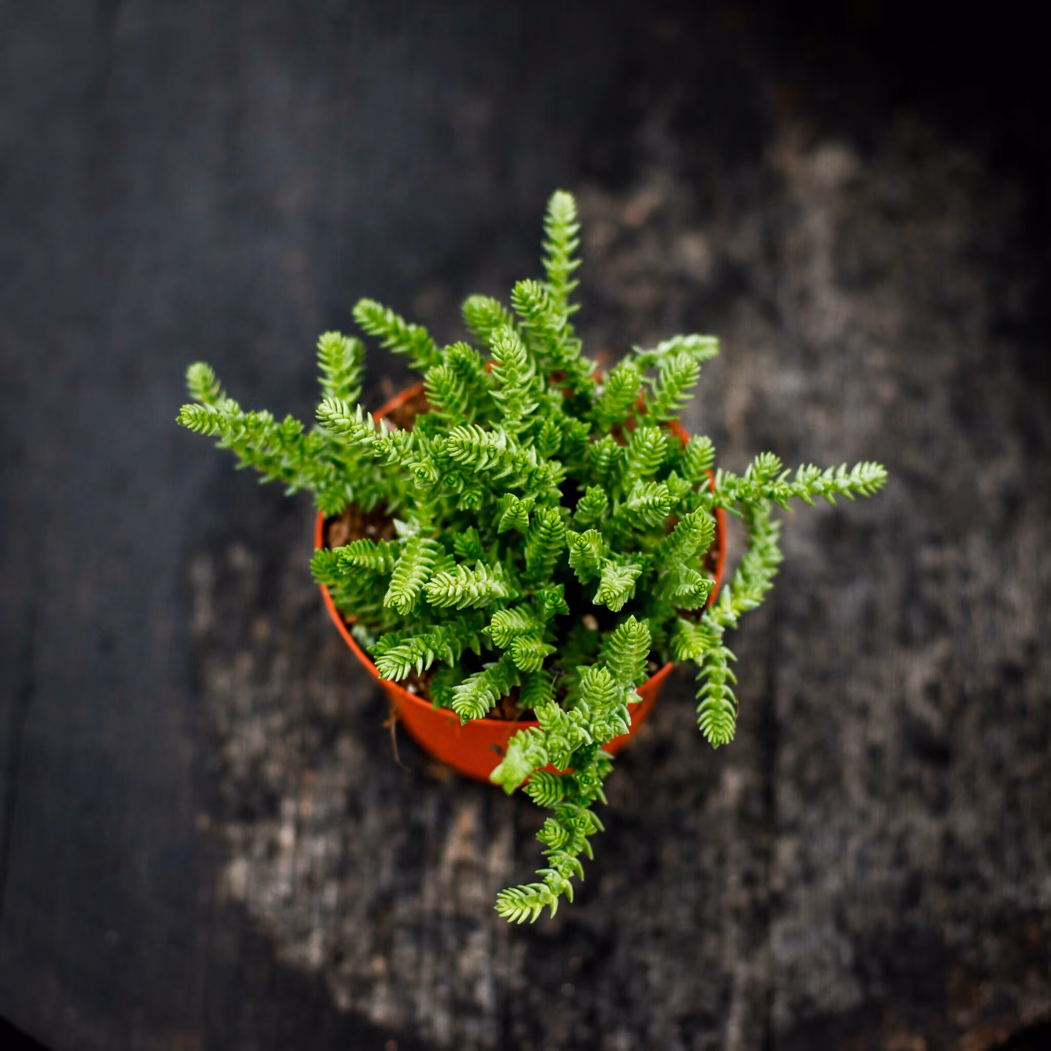Crassula lycopodioides 11 cm, – en unik succulent som förtrollar med sina barrlika grenar. Perfekt för ljusa platser, lättskött och idealisk för små utrymmen.