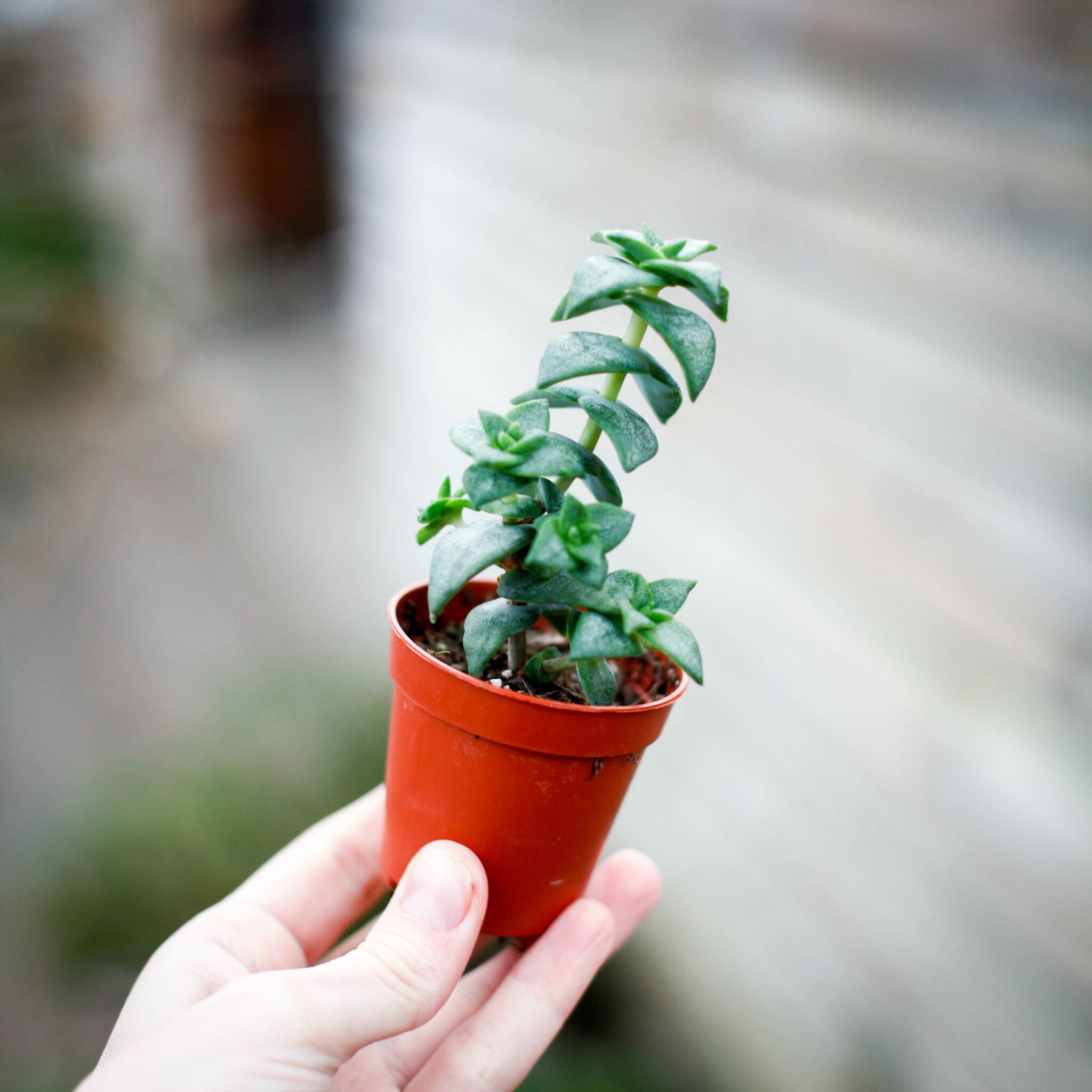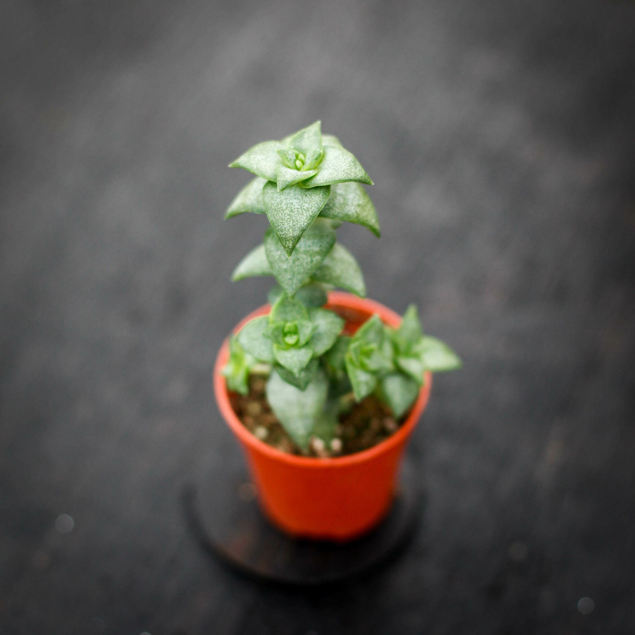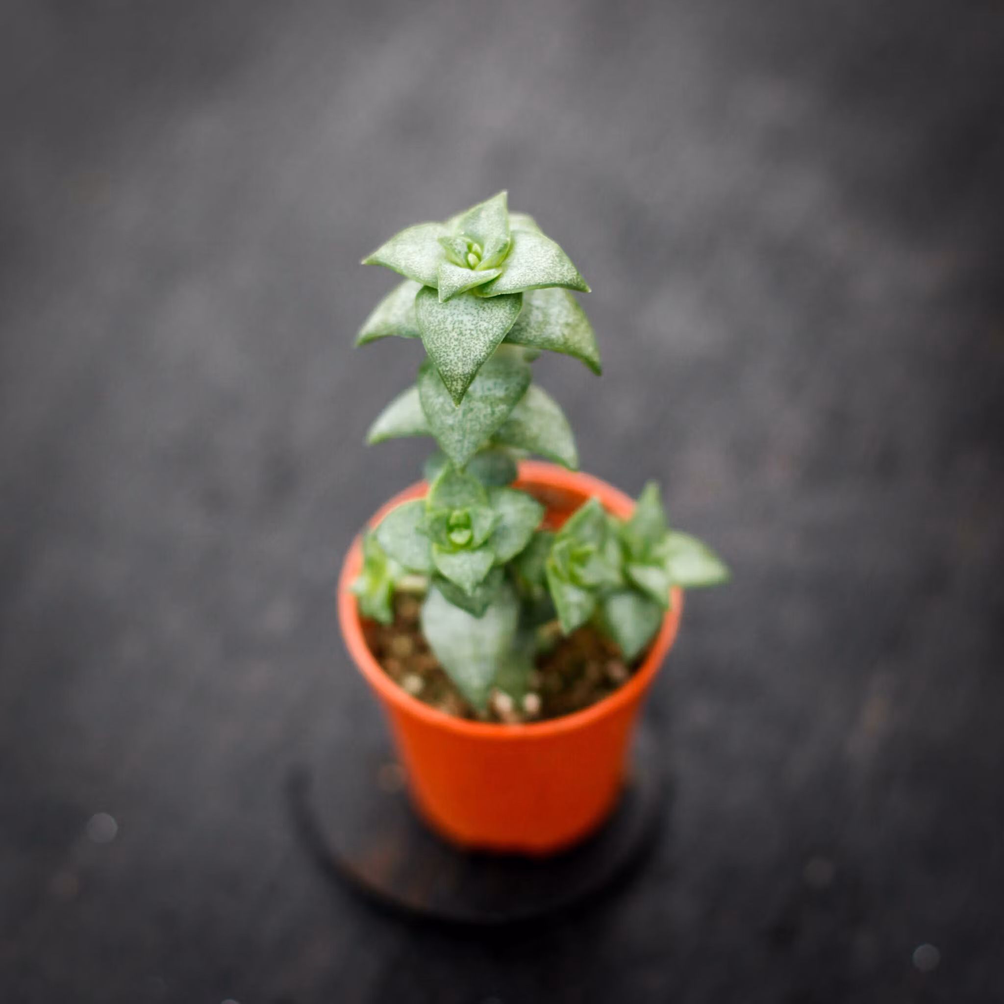 Crassula perforata 6 cm, även känd som "Halsbandskaktus", är en unik suckulent med spiralformade blad. Perfekt för amplar, kräver minimal skötsel.