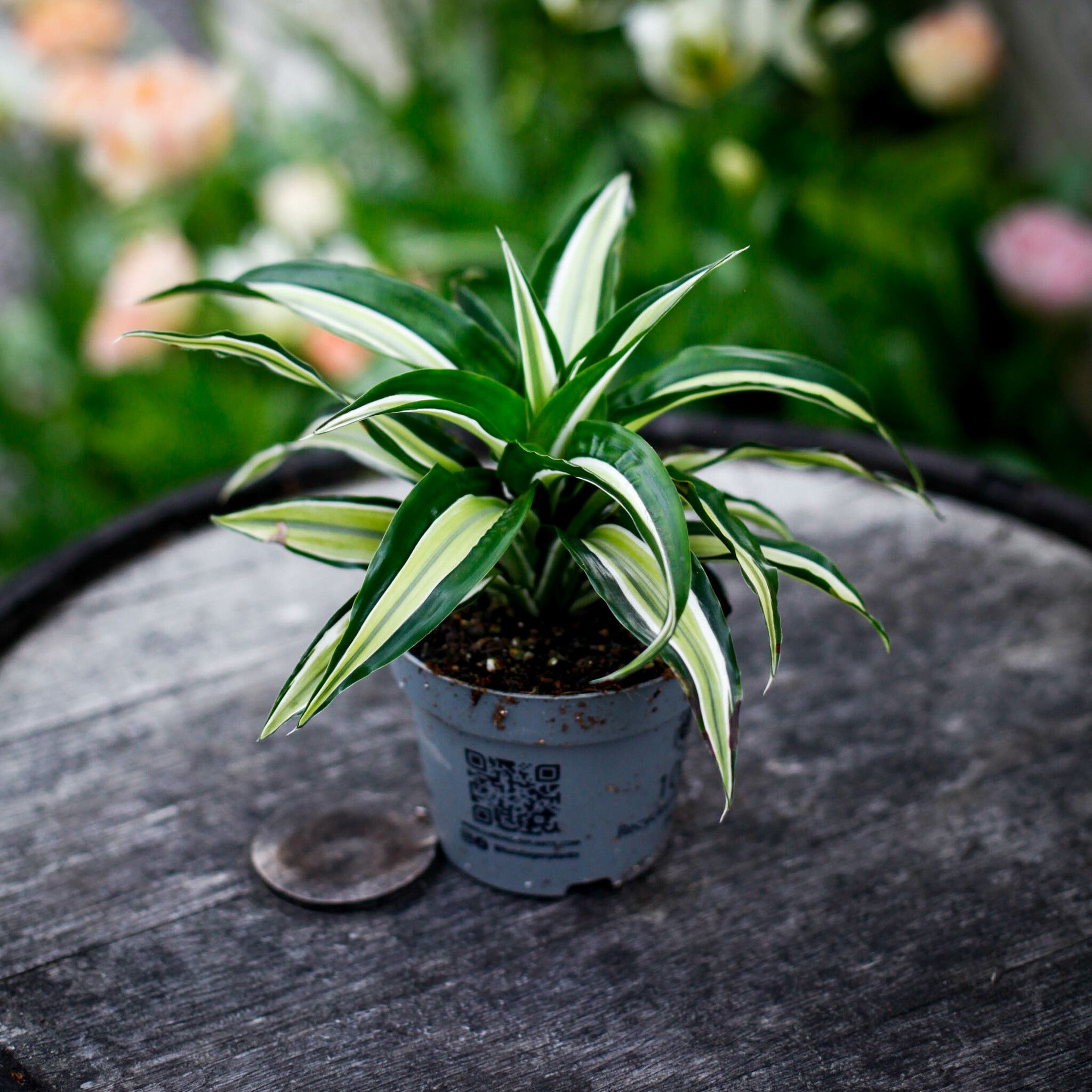 Dracaena fragrans (Compacta Grp) 'Malaika' är en söt Dracaena med härligt flerfärgade blad. Det kompakta växtsättet och den täta bladformen gör den till ett fint inslag i både små och stora utrymmen.