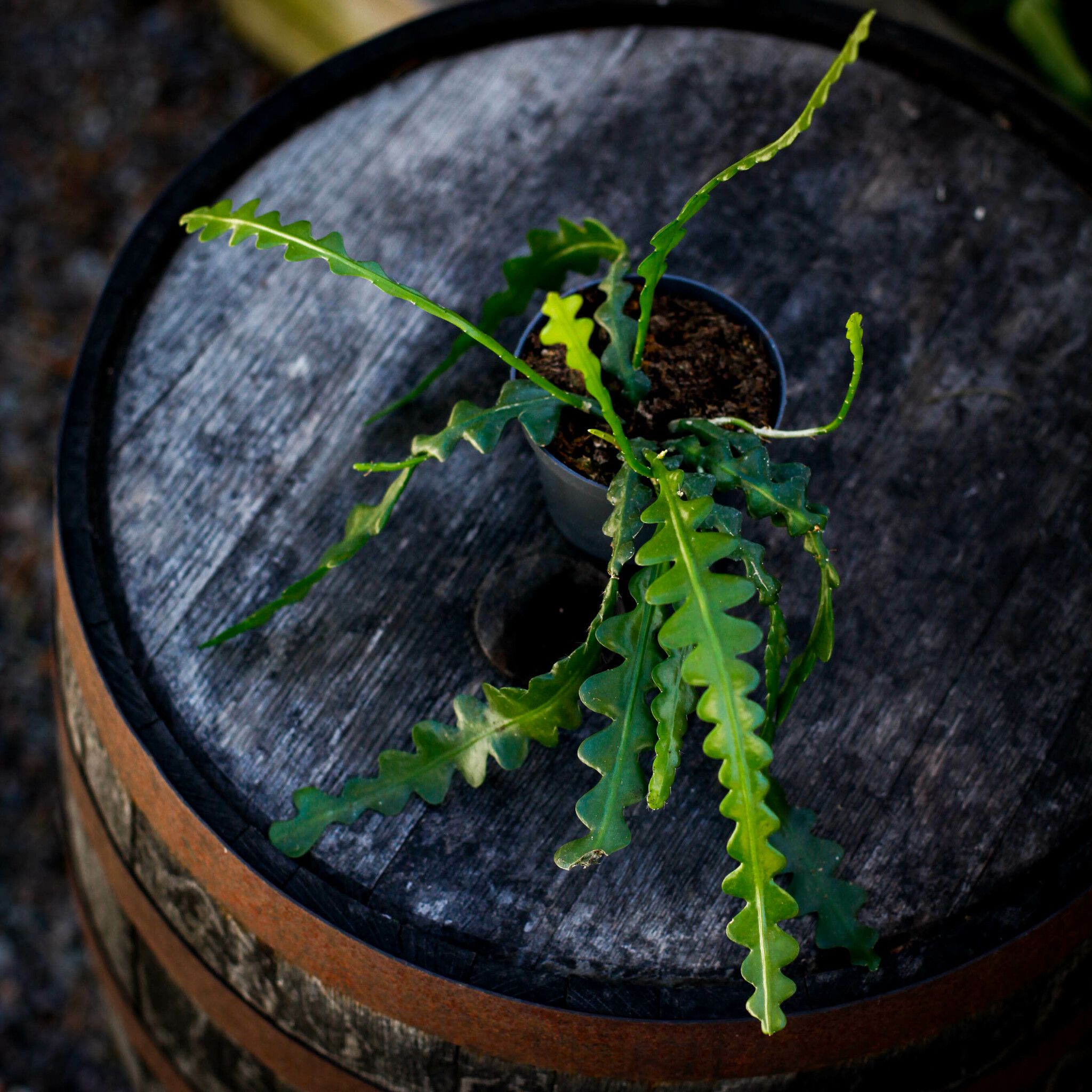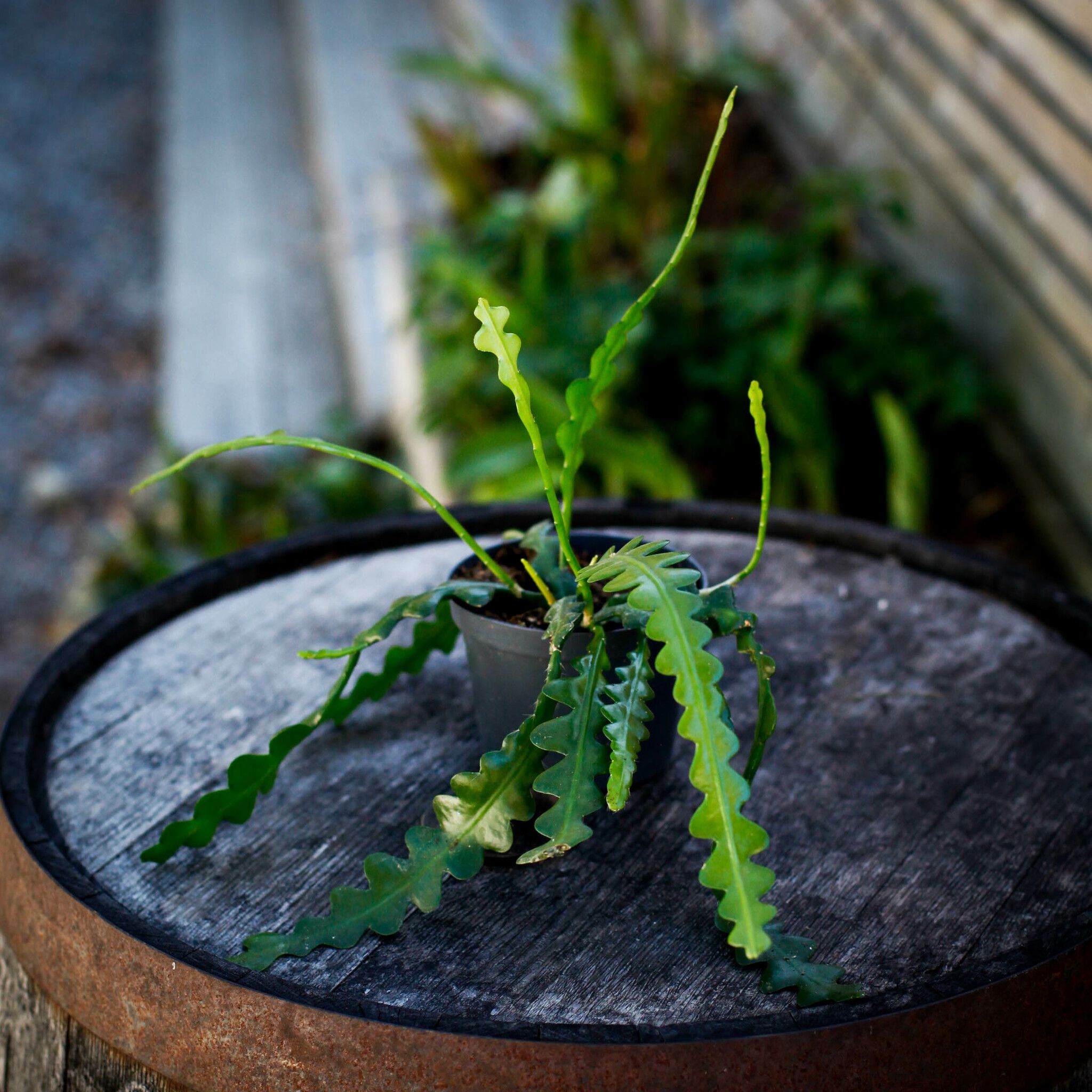 Epiphyllum anguliger, även känd som fiskbenskaktus, är en exotisk och lättskött epifytisk kaktus med karakteristiska, djupt flikiga blad som påminner om ett fiskben. Den är populär som hängväxt tack vare sitt unika utseende och sin förmåga att blomma med stora, doftande blommor. Perfekt för både nybörjare och erfarna växtentusiaster.