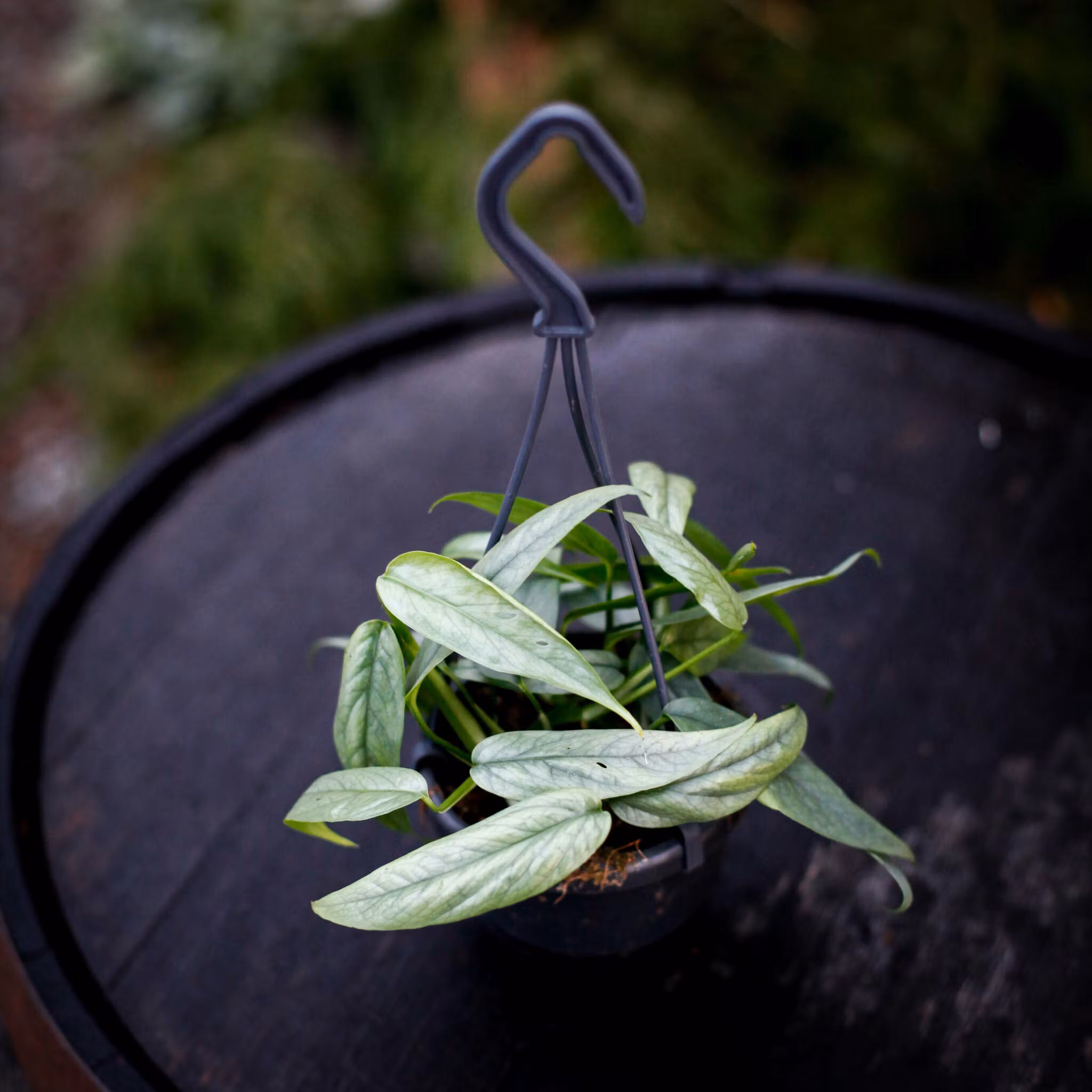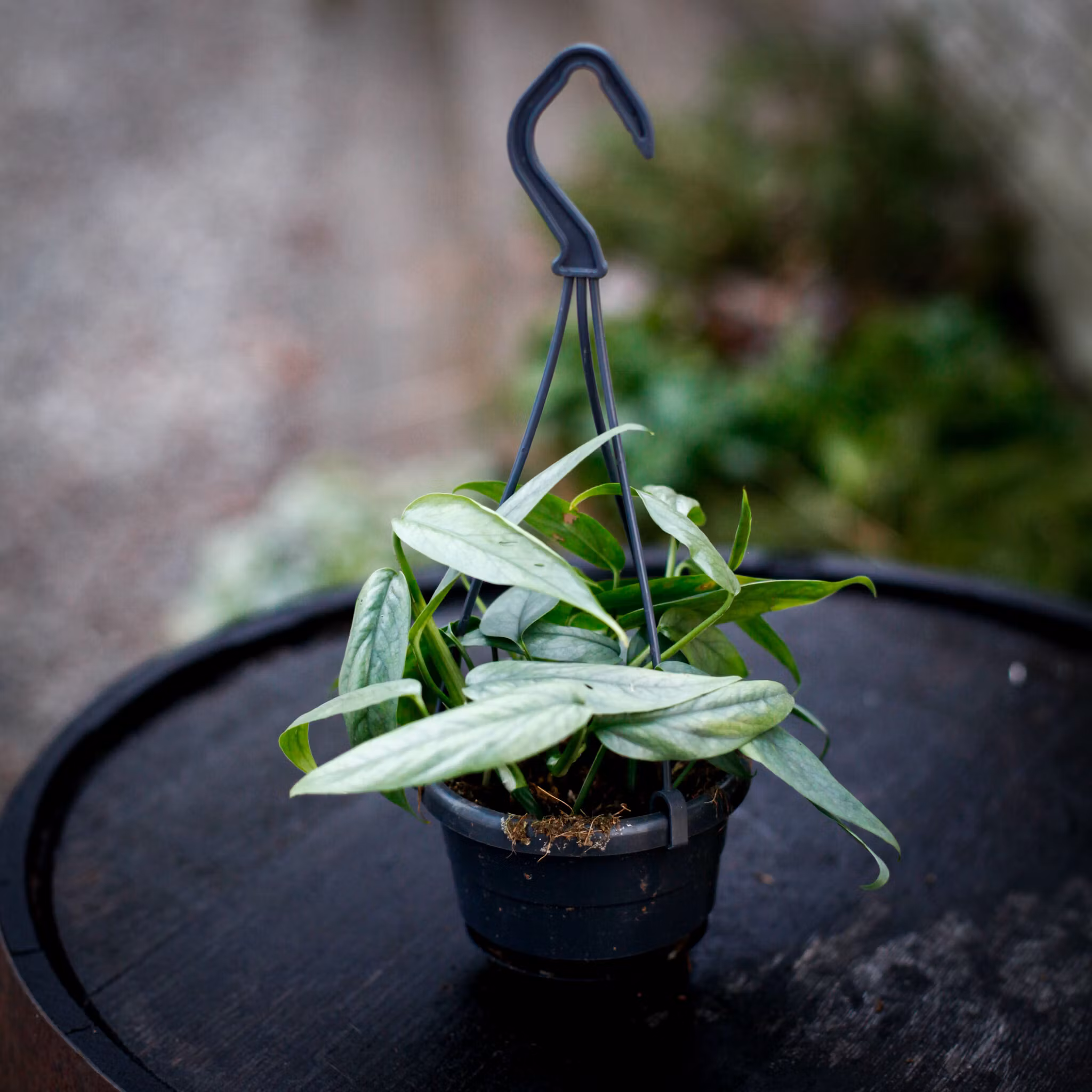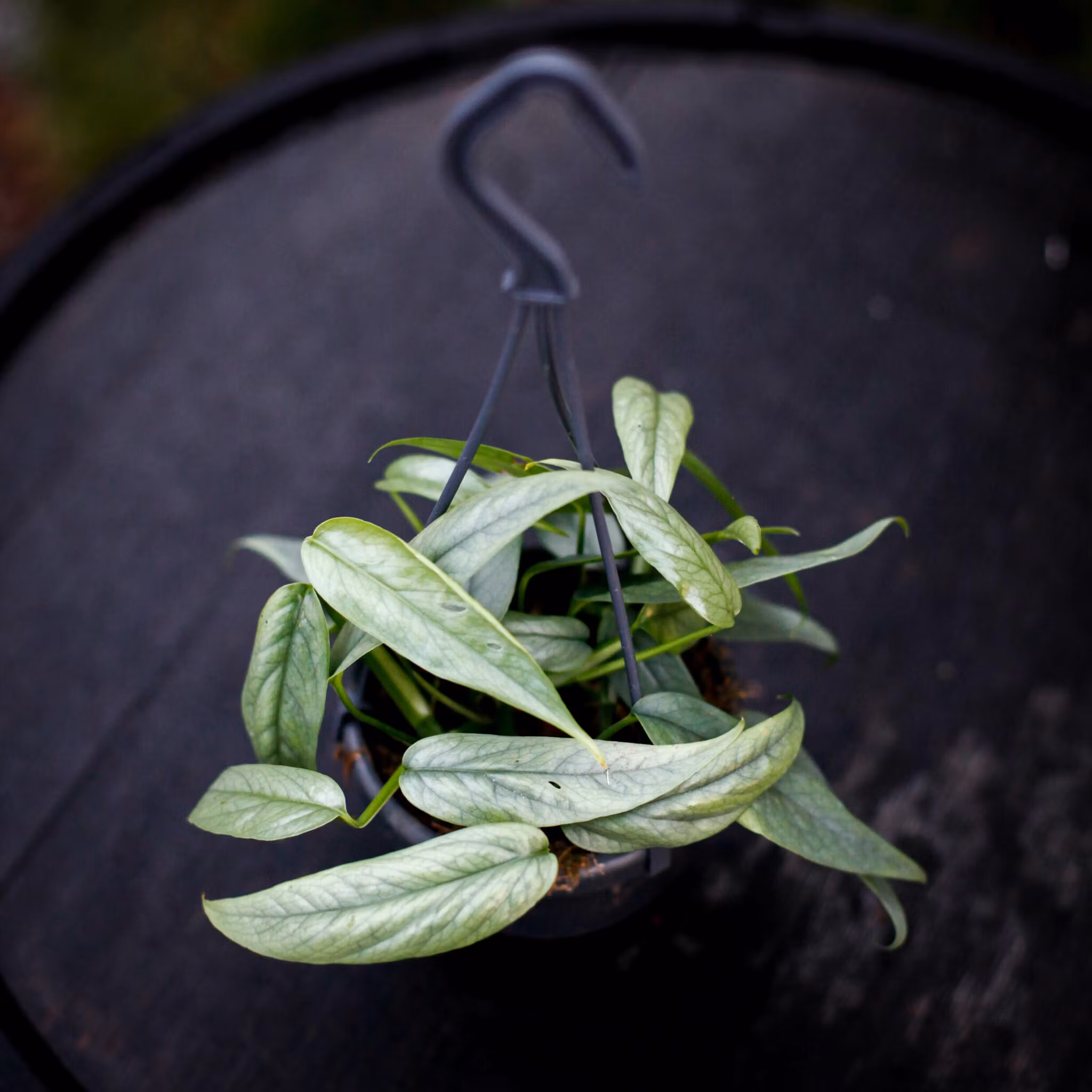 Epipremnum pinnatum 'Cebu Blue' är en unik och elegant klätterväxt som kännetecknas av sina silverblå blad med en metallisk glans. Denna exotiska växt har sitt ursprung i Filippinerna, där den naturligt slingrar sig uppför träd och ytor. Med sin förmåga att utveckla djupa fenestreringar (bladflikar) när den blir äldre, är den en favorit bland samlare och växtälskare. Perfekt för både amplar och mosspåle, denna snabbväxande skönhet är ett måste i varje grön oas.